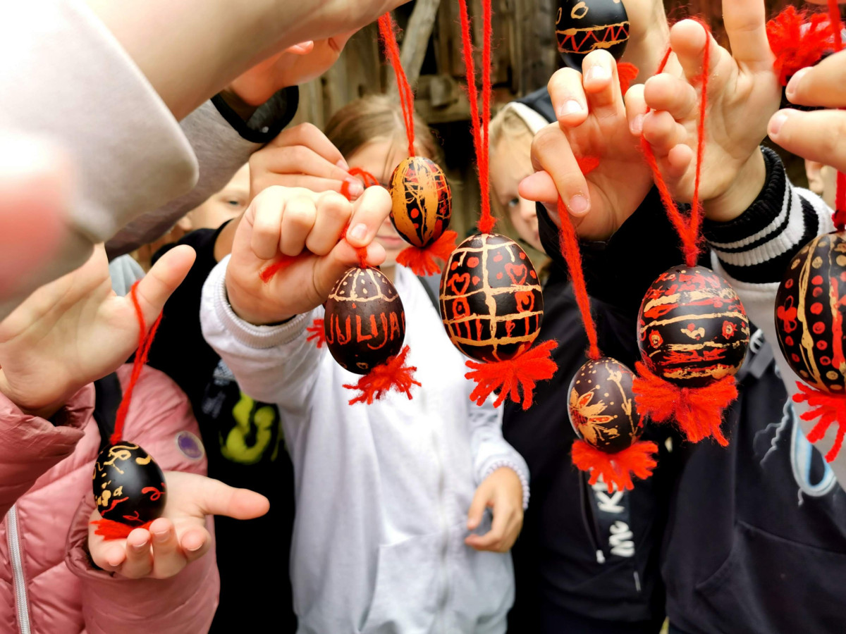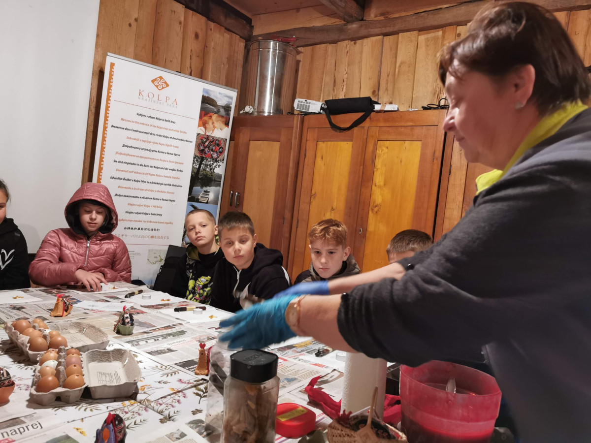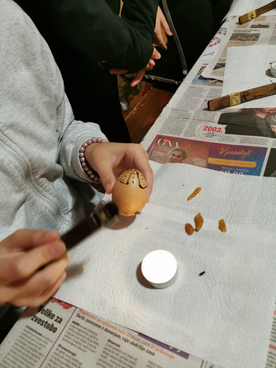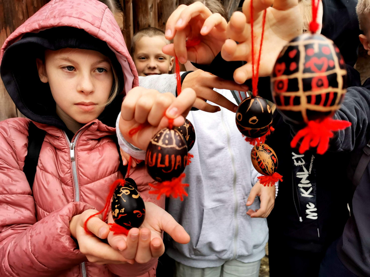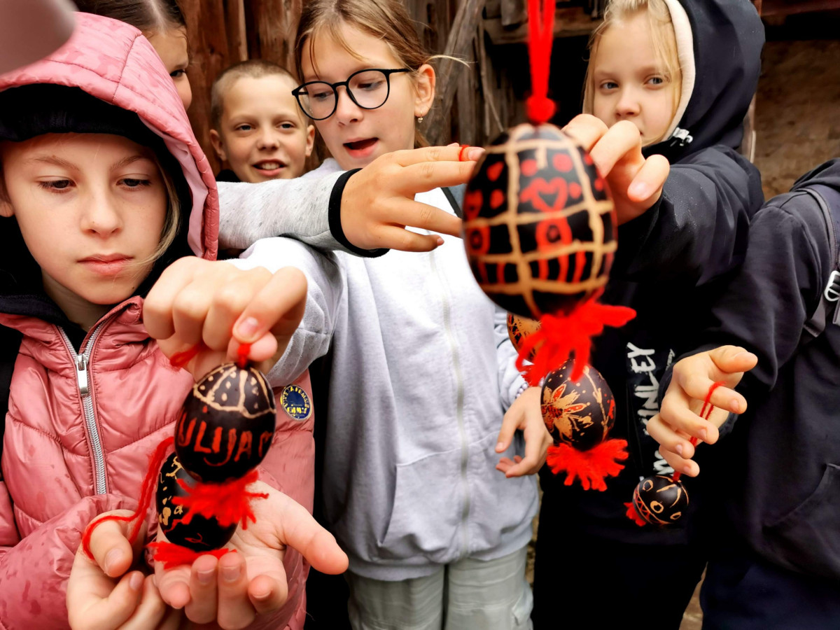V torek, 30. 9. 2025, smo se učenci 6. in 7. razreda odpravili v Šokčev dvor v Žuničih. Prijazna gospa Vesna in gospod Jan sta nam najprej razložila kako s svojimi dejanji lahko onesnažimo naravo in tako prizadenemo živali v njej. Potem smo začeli z delom. Učenci 6. razreda smo začeli z voskom risati na pisanice, medtem ko so sedmošolci začeli z vezenjem belokranjskih vzorcev na platno za izdelavo knjižne kazalke. Bilo je zelo zabavno risati na jajce. Zelo se zahvaljujemo prijazni gospe, ki nam je omogočila da je delo potekalo gladko. Ko smo s pisanicami končali smo jih potopili v rdečo barvo, zatem pa smo lahko narisali še kakšen belokranjski vzorec. Ko smo še zadnjič porisali jajca, jih je gospa potopila v črno vodo. Ker je bilo potrebno počakati 20-40 minut da se obarvajo, so se nekateri odpravili z Janom na sprehod, kjer so našli poškodovano čebelo in jo lepo oskrbeli. Ko so se vrnili iz sprehoda, smo skupaj odcedili pisanice in si jih ogledali. Vsi smo bili ponosni nase. Kmalu je prišel še 7. razred in tudi oni so bili ponosni na svoje vzorce. Gospod Jan nam je še razložil o napadu Turkov, kako so 5- letne dečke vzeli staršem in jih vzgajali za vojake, medtem ko pa deklicam niso spletali kitk in jih niso preveč lepo rihtali, saj niso hoteli, da bi jim jih vzeli. Ta dan se nam je zdel zelo dober, saj smo v njem uživali, se učili o zgodovini Žuničev in izdelovali tradicionalne belokranjske vzorce in pisanice. Upamo, da v prihodnosti še kdaj obiščemo Šokčev dvor.