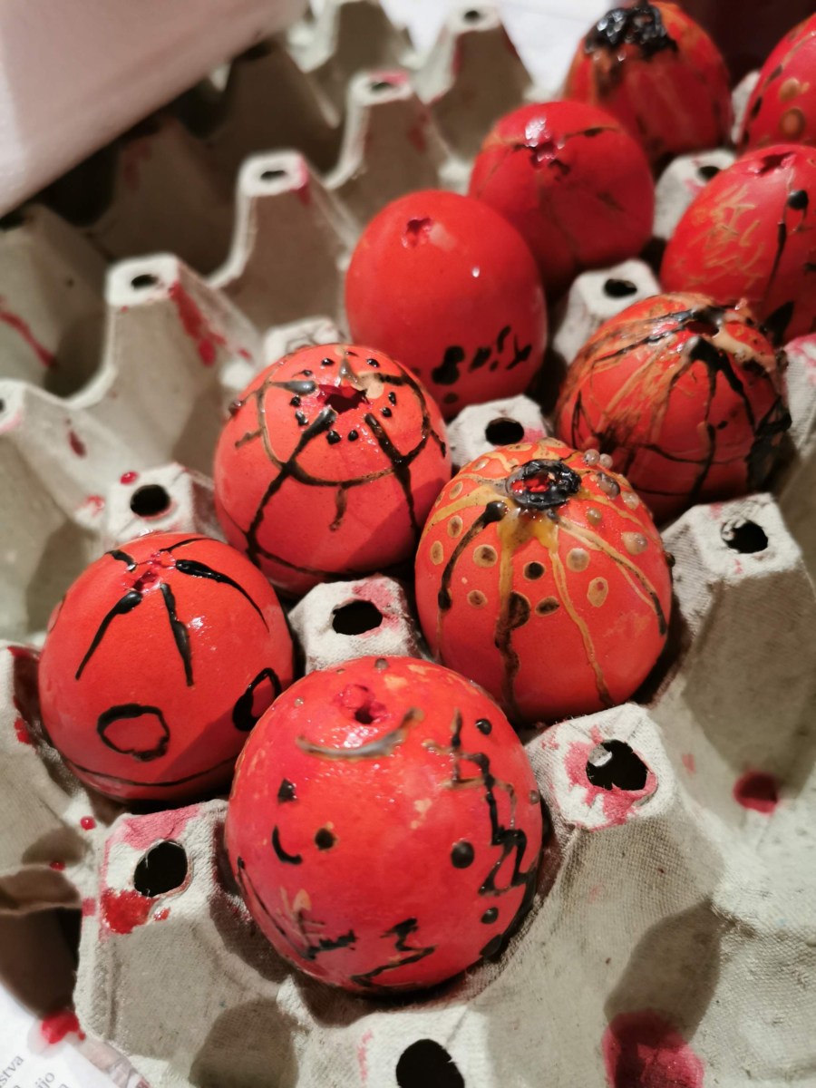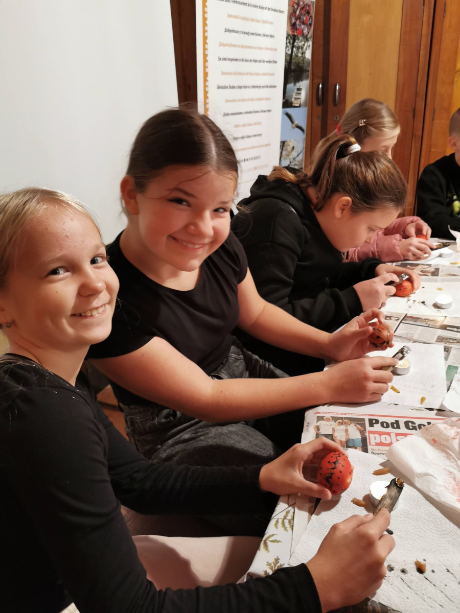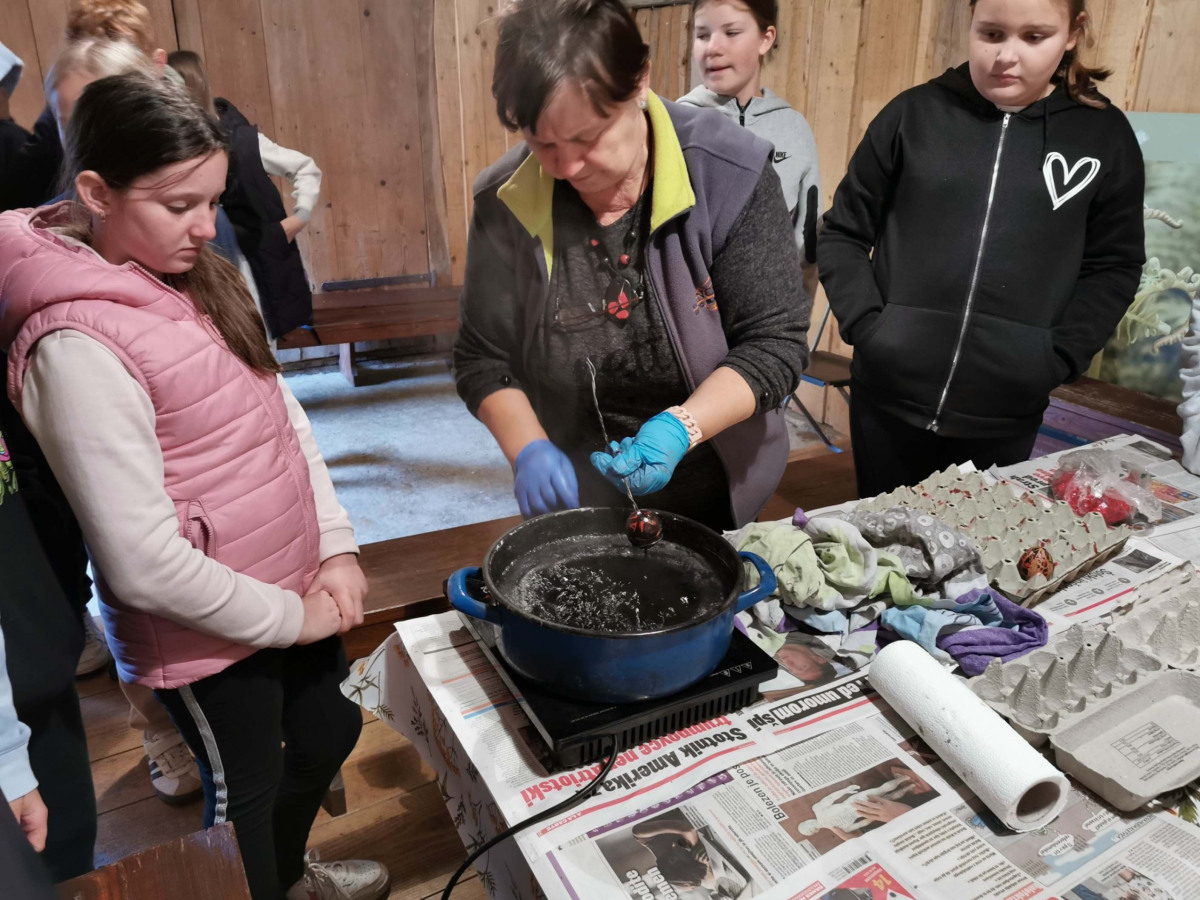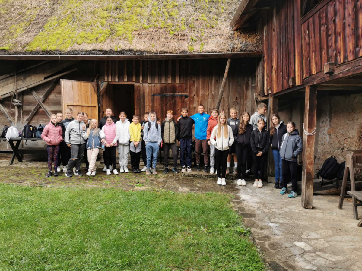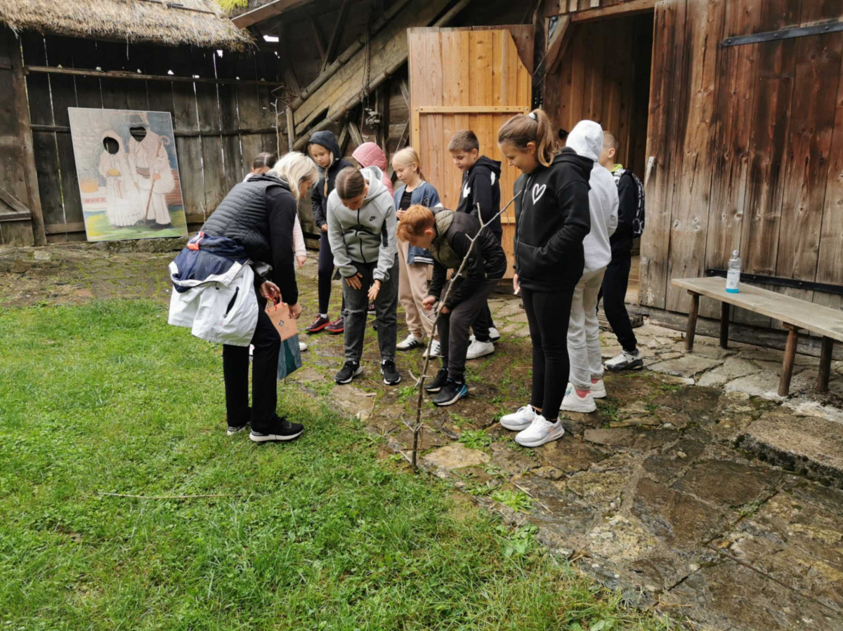 V torek, 30. 9. 2025, smo se učenci 6. in 7. razreda odpravili v Šokčev dvor v Žuničih. Prijazna gospa Vesna in gospod Jan sta nam najprej razložila kako s svojimi dejanji lahko onesnažimo naravo in tako prizadenemo živali v njej. Potem smo začeli z delom. Učenci 6. razreda smo začeli z voskom risati na pisanice, medtem ko so sedmošolci začeli z vezenjem belokranjskih vzorcev na platno za izdelavo knjižne kazalke. Bilo je zelo zabavno risati na jajce. Zelo se zahvaljujemo prijazni gospe, ki nam je omogočila da je delo potekalo gladko. Ko smo s pisanicami končali smo jih potopili v rdečo barvo, zatem pa smo lahko narisali še kakšen belokranjski vzorec. Ko smo še zadnjič porisali jajca, jih je gospa potopila v črno vodo. Ker je bilo potrebno počakati 20-40 minut da se obarvajo, so se nekateri odpravili z Janom na sprehod, kjer so našli poškodovano čebelo in jo lepo oskrbeli. Ko so se vrnili iz sprehoda, smo skupaj odcedili pisanice in si jih ogledali. Vsi smo bili ponosni nase. Kmalu je prišel še 7. razred in tudi oni so bili ponosni na svoje vzorce. Gospod Jan nam je še razložil o napadu Turkov, kako so 5- letne dečke vzeli staršem in jih vzgajali za vojake, medtem ko pa deklicam niso spletali kitk in jih niso preveč lepo rihtali, saj niso hoteli, da bi jim jih vzeli. Ta dan se nam je zdel zelo dober, saj smo v njem uživali, se učili o zgodovini Žuničev in izdelovali tradicionalne belokranjske vzorce in pisanice. Upamo, da v prihodnosti še kdaj obiščemo Šokčev dvor.