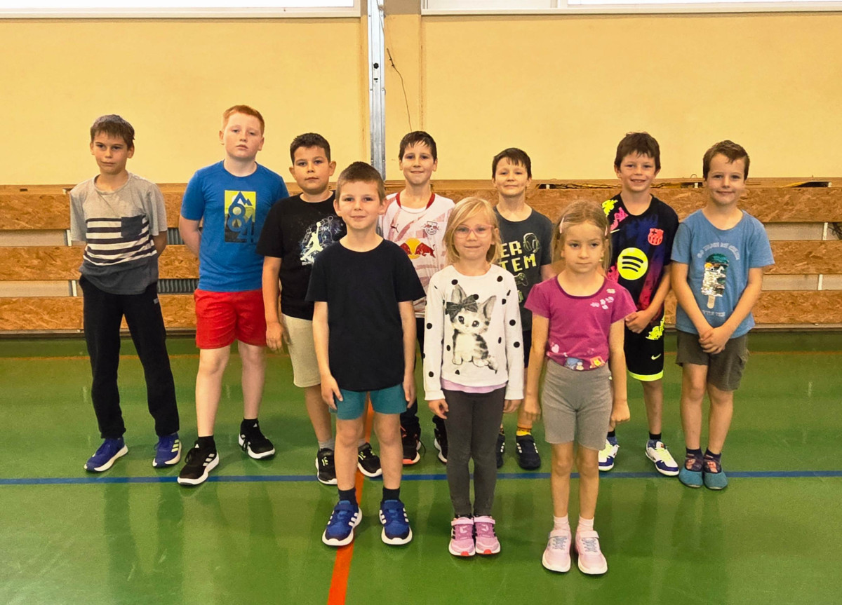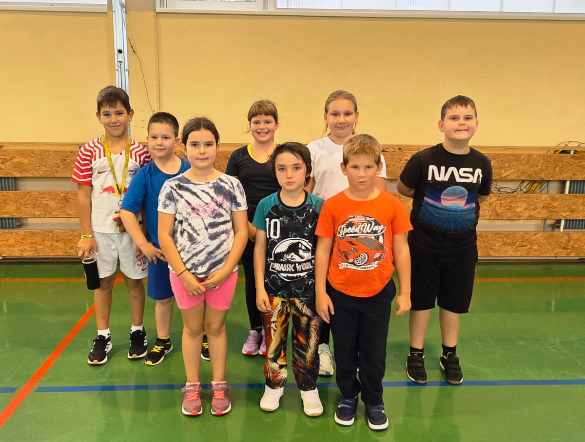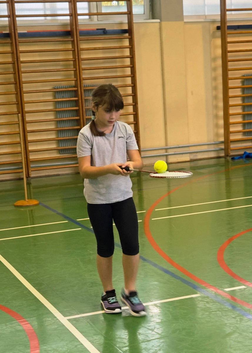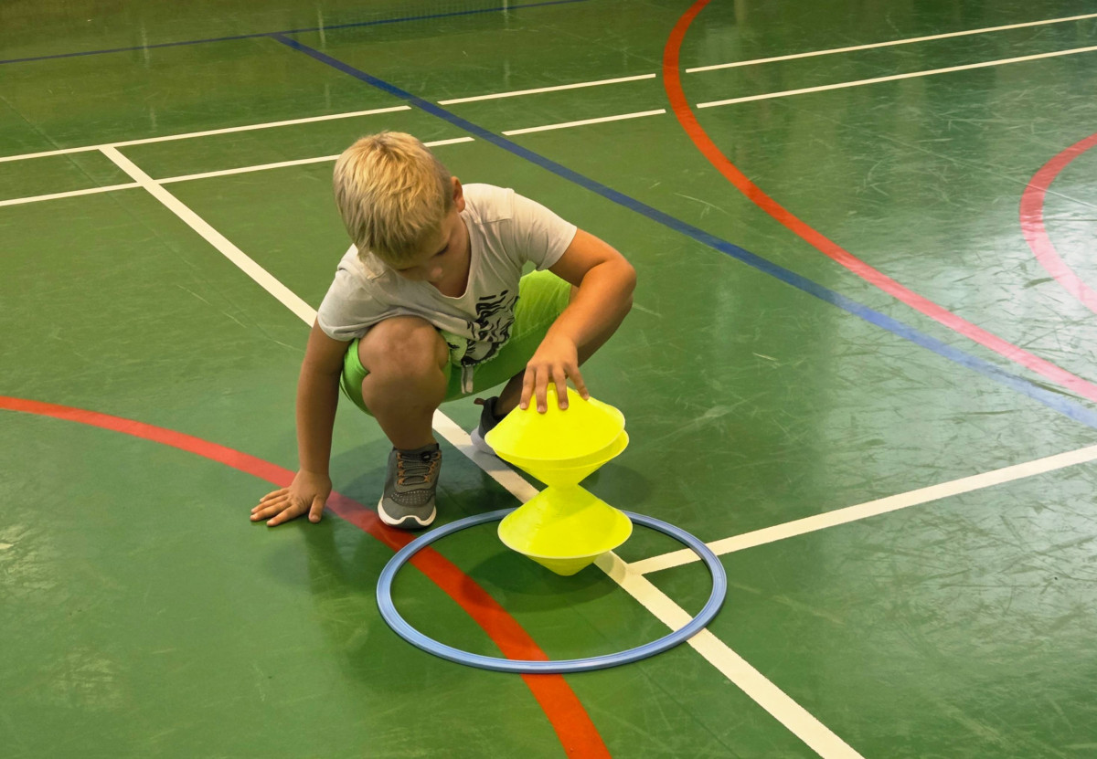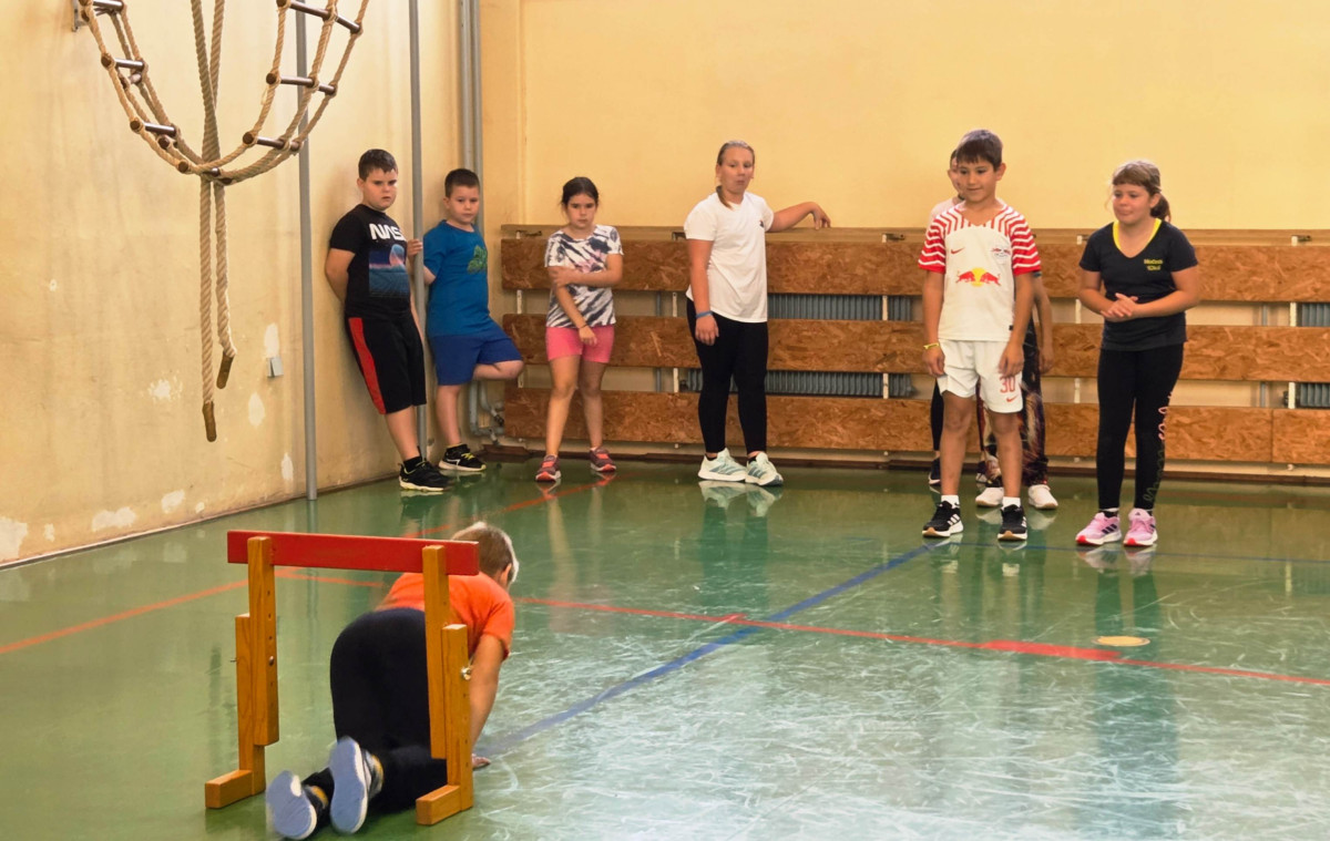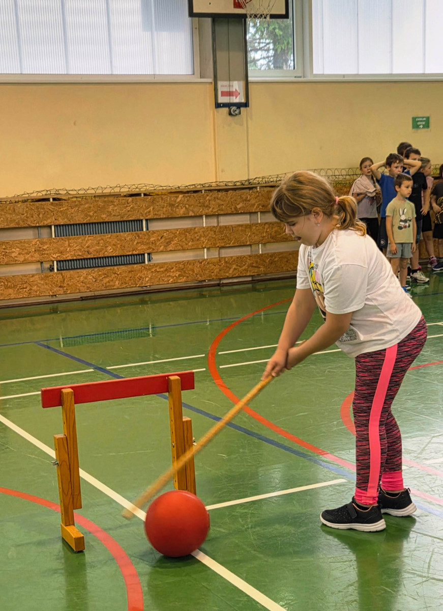 V četrtek, 23. 10. 2025, smo imeli učenci 1., 2., 3., 4. in 5. razreda športni dan. Zjutraj smo se zbrali v telovadnici. Razdelili smo se v 8 skupin. Učiteljica je določila 8 učencev – vodij ekip, ti pa so nato izbrali člane svoje skupine – od petošolcev do prvošolcev. Ko smo bili vsi razporejeni, so 4 ekipe počivale (na blazinah), druge štiri pa tekmovale. Potem pa obratno, saj ni bilo prostora, da bi hkrati tekmovale vse skupine. Preizkusili smo se v teku po štirih, teku ali hoji s stožcem na glavi, plazenju pod oviro, prenašanju treh žog različnih velikosti in teže, prenašanju teniške žogice na badminton loparju, postavljanju stožcev drugega na drugega, postavljanju kijev v obroč sredi poti, teku z oblačenjem in slačenjem brezrokavnika ter ciljanju palice z obročem.