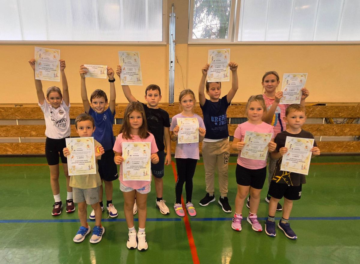Danes, 23. 10. 2025, smo imeli učenci 1., 2., 3., 4. in 5. razreda športni dan – Igre z žogo. V šolo smo prišli kot običajno. S seboj smo imeli športno opremo in dobro voljo. Ko smo se vsi zbrali, smo se razdelili v 8 skupin, pomešani med seboj od 1. do 5. razreda. Nato smo se začeli z različnimi štafetnimi igrami. Ker je bilo preveč skupin, so najprej začele 4 skupine in med njimi je bila tudi naša skupina. Ostale 4 skupine so počivale in navijale. Nato pa so odšle tekmovat še druge 4 in smo mi počivali. Po nekaj igrah je sledila malica in odmor za pijačo. Po malici pa so zopet sledile igre. Igre so bile različne: od teka, hoje pod ovirami, plazenja in prenašanja različnih žog. V vseh igrah smo morali pokazati moč in spretnost. Trudili smo se in se spodbujali, se jezili in veliko smejali. In kmalu prišli do zaključka iger. Lahko smo se odšli igrat. Čez nekaj časa pa smo se zbrali vsi skupaj, da bi izvedeli rezultate. Prve tri najboljše skupine so bile nagrajene in so dobile priznanja. Na žalost je bila naša skupina 7., ampak nič hudega. Vseeno mi je bil ta dan zelo všeč in zelo smo se zabavali.