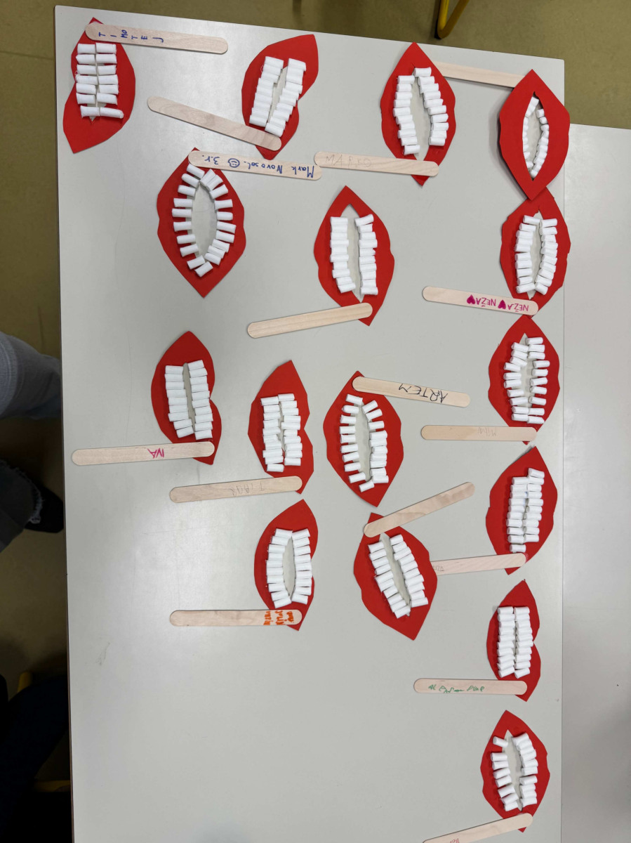 V naš razred je prišla medicinska sestra Ana. Najprej smo se pogovorili, kako bo potekal dan. Nato smo dobili roza tabletke za zobe in pregledali, kako dobro smo si umili zobe. Sledil je pogovor glede nege zob. Spoznali smo, koliko mlečnih zobkov imamo in koliko jih nato zraste stalnih, pa tudi, zakaj sploh imamo najprej mlečne zobe.