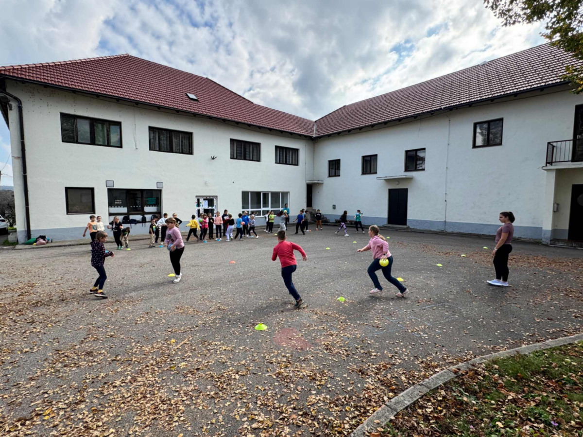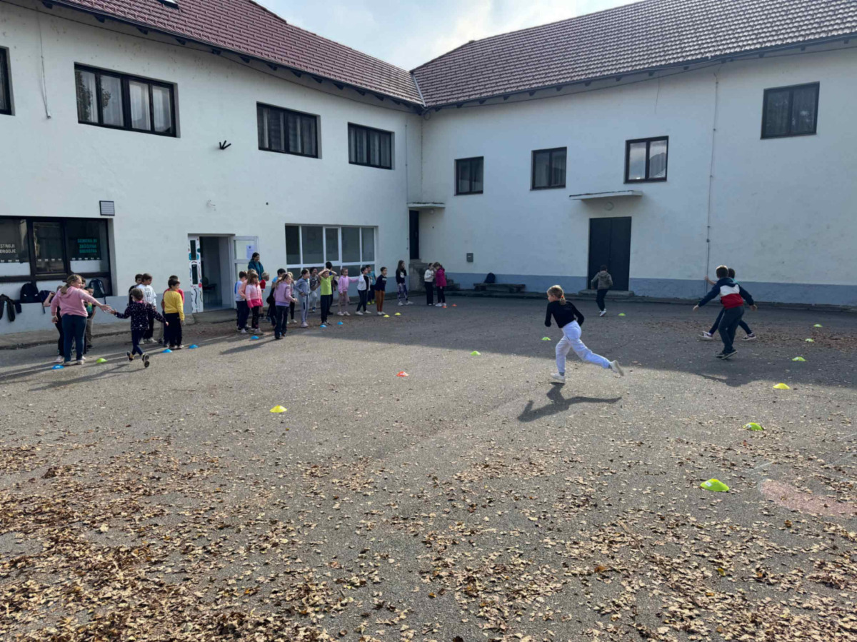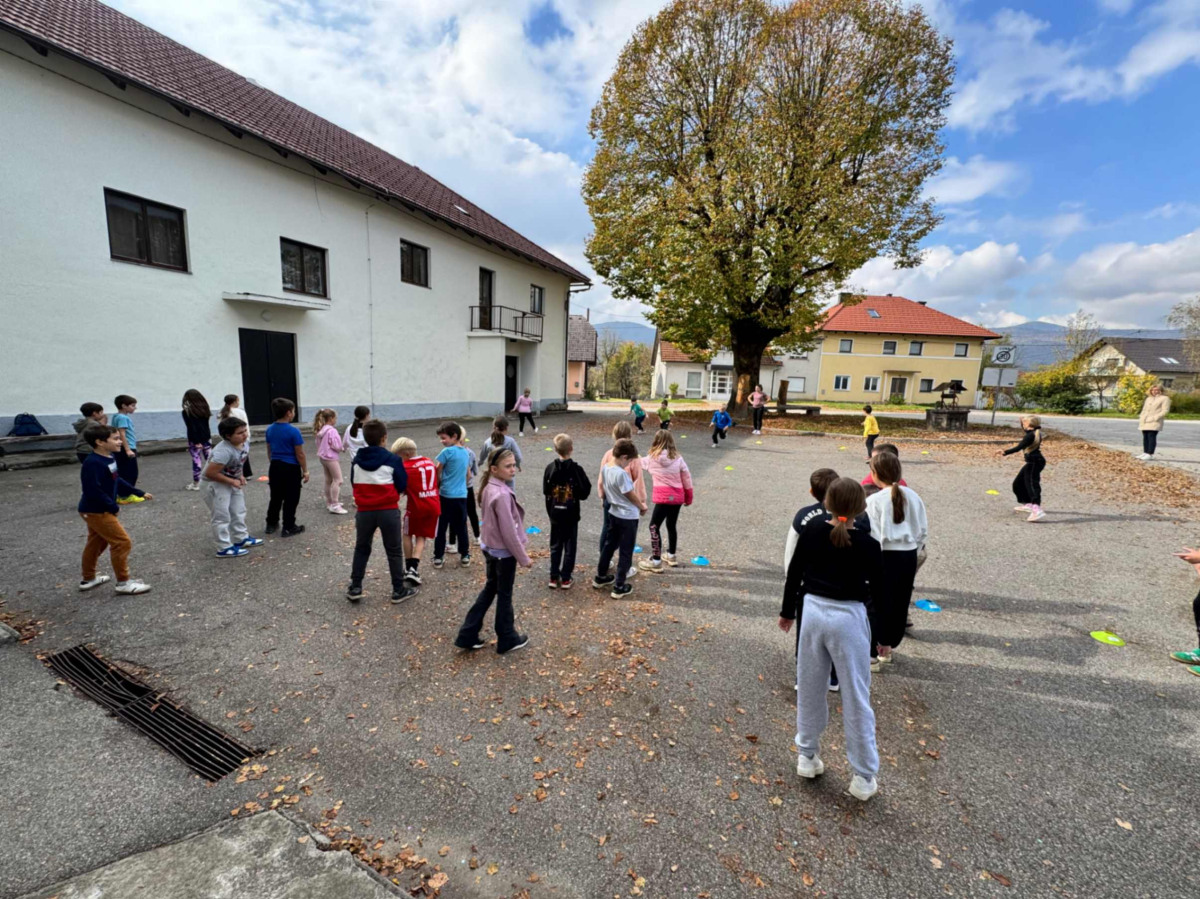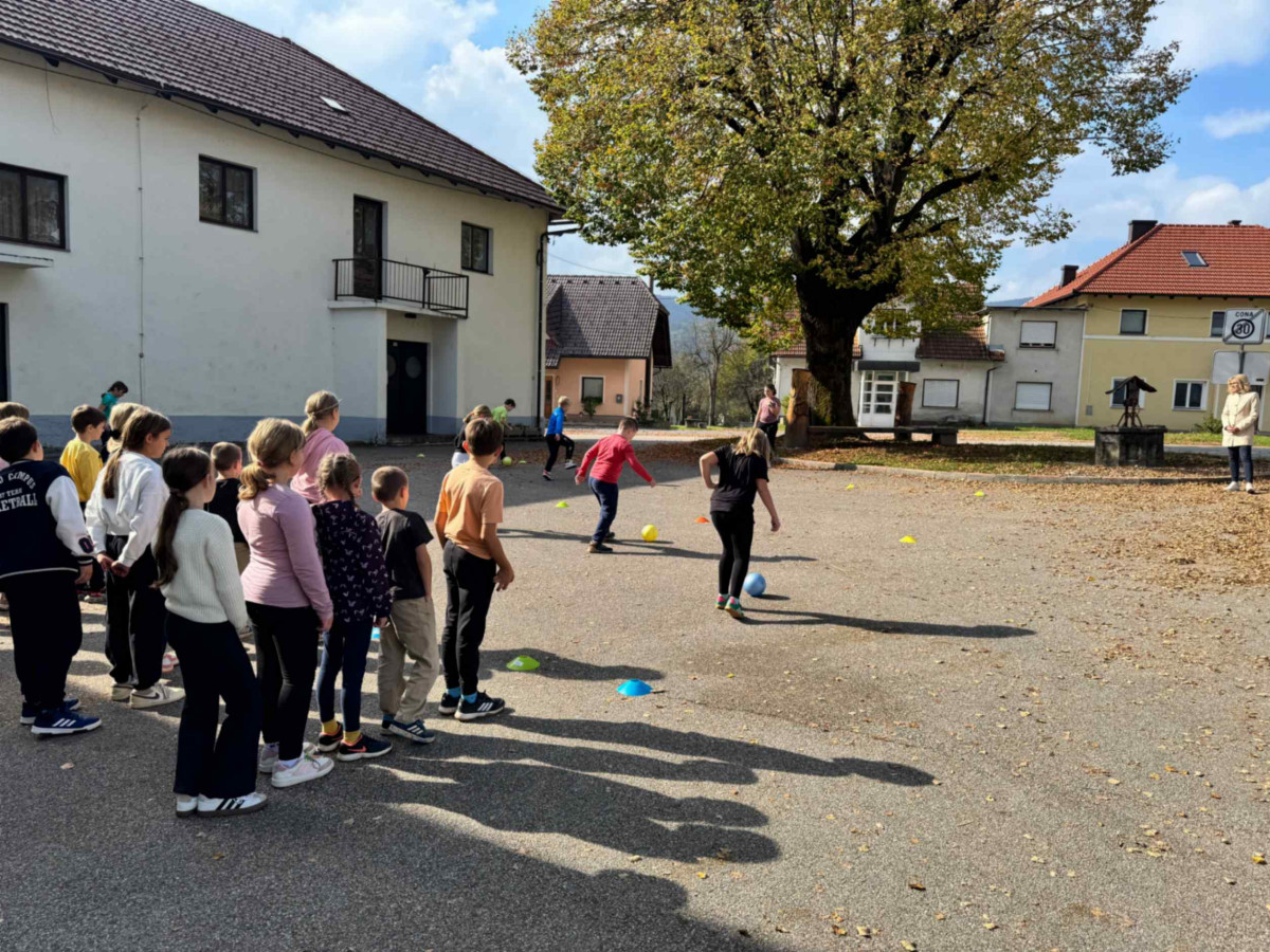 Zadnjo uro smo se združili z učenci 4. r. in se skupaj razgibali. Vodili sta nas kineziologinji iz ZD Črnomelj. Pripravili sta nekaj štafetnih iger z različnimi ovirami, ki smo jih premagovali po skupinah. Na koncu smo se poigrali še s padalom – vsak razred s svojim – ga dvigovali in spuščali, tekli pod njim ipd.