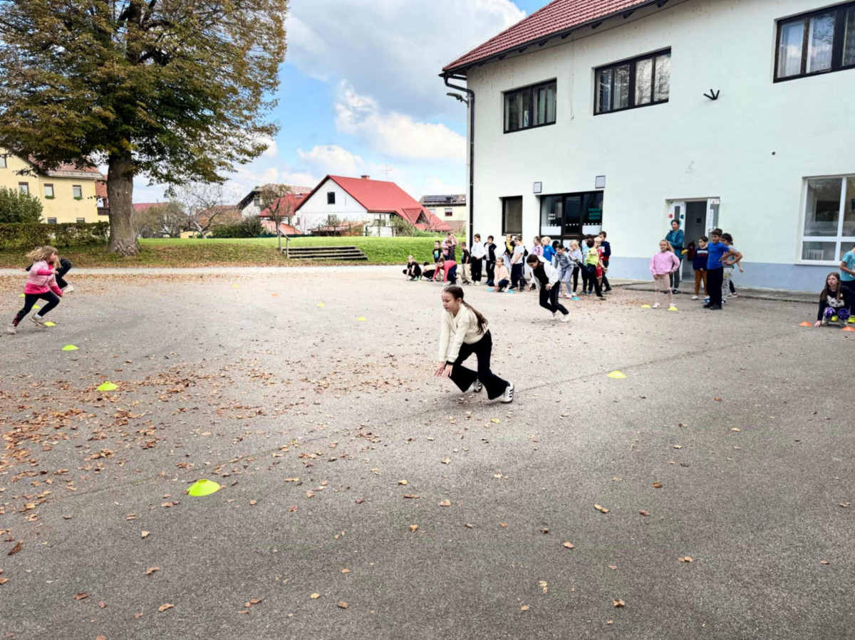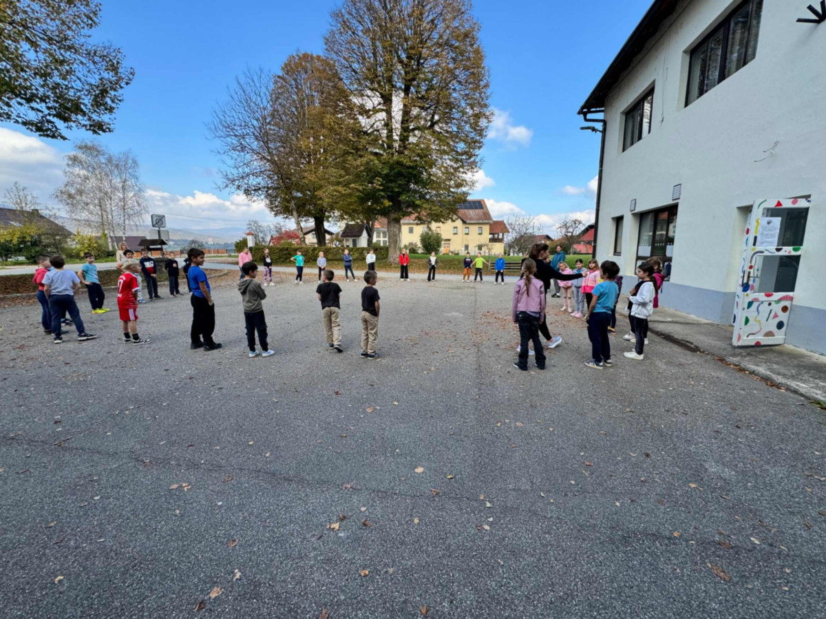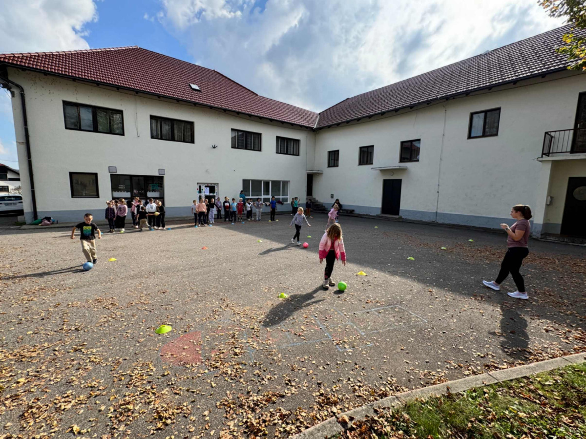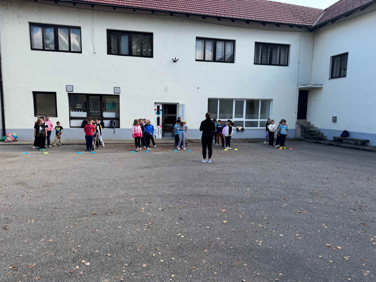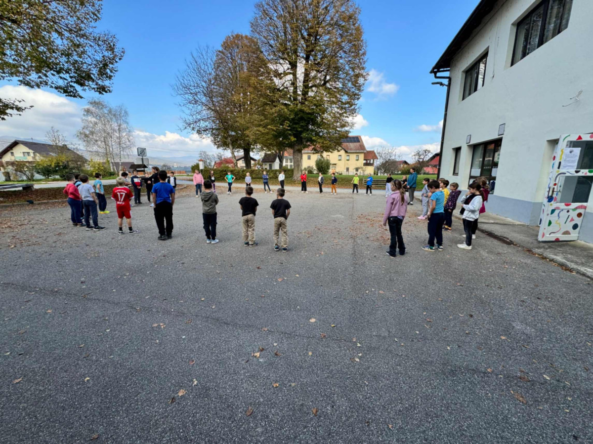 Zadnjo uro smo se združili z učenci 4. r. in se skupaj razgibali. Vodili sta nas kineziologinji iz ZD Črnomelj. Pripravili sta nekaj štafetnih iger z različnimi ovirami, ki smo jih premagovali po skupinah. Na koncu smo se poigrali še s padalom – vsak razred s svojim – ga dvigovali in spuščali, tekli pod njim ipd.