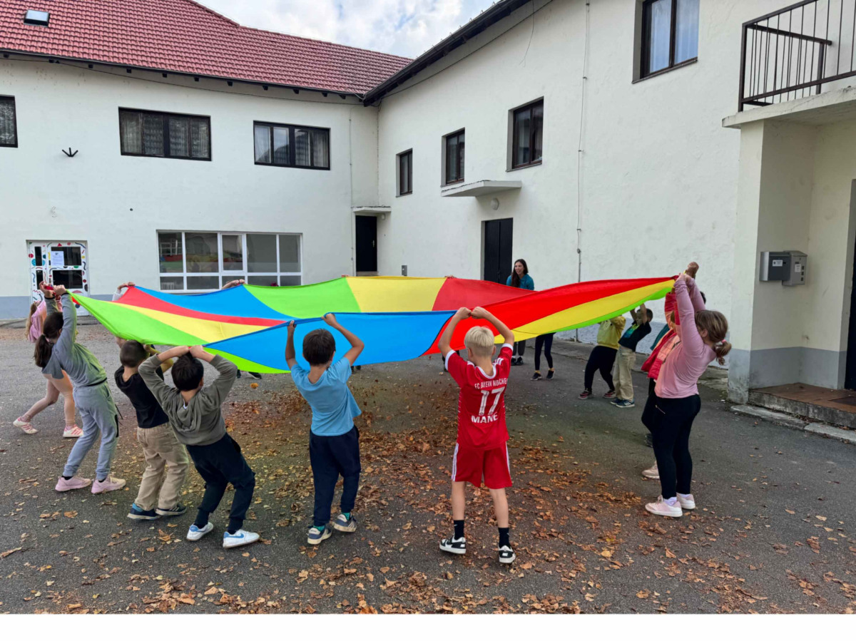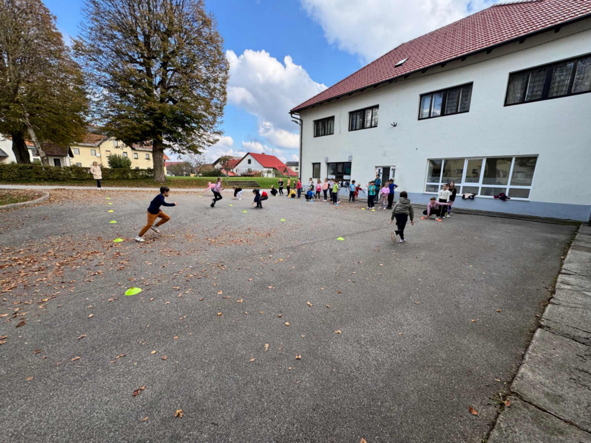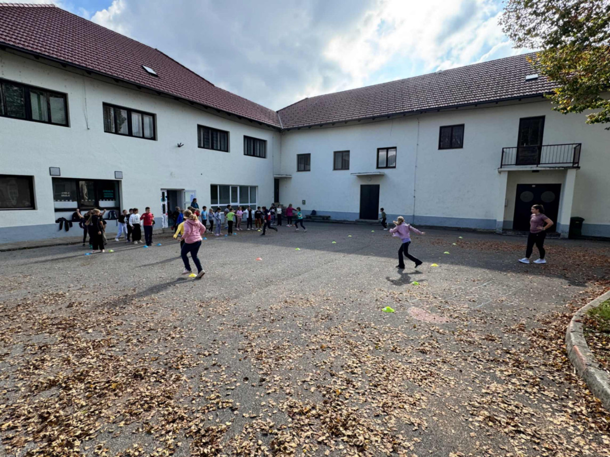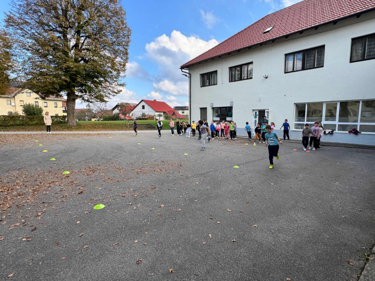 Zadnjo uro smo se združili z učenci 4. r. in se skupaj razgibali. Vodili sta nas kineziologinji iz ZD Črnomelj. Pripravili sta nekaj štafetnih iger z različnimi ovirami, ki smo jih premagovali po skupinah. Na koncu smo se poigrali še s padalom – vsak razred s svojim – ga dvigovali in spuščali, tekli pod njim ipd.