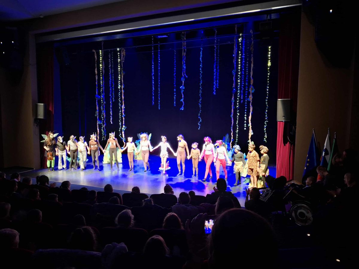 Tam smo si ogledali glasbeno – gledališko predstavo Žirafe ne znajo plesati. V predstavi nastopajo: 3 zebre, 2 flaminga, 2 opici, 2 gazeli, 2 leva in žirafa.