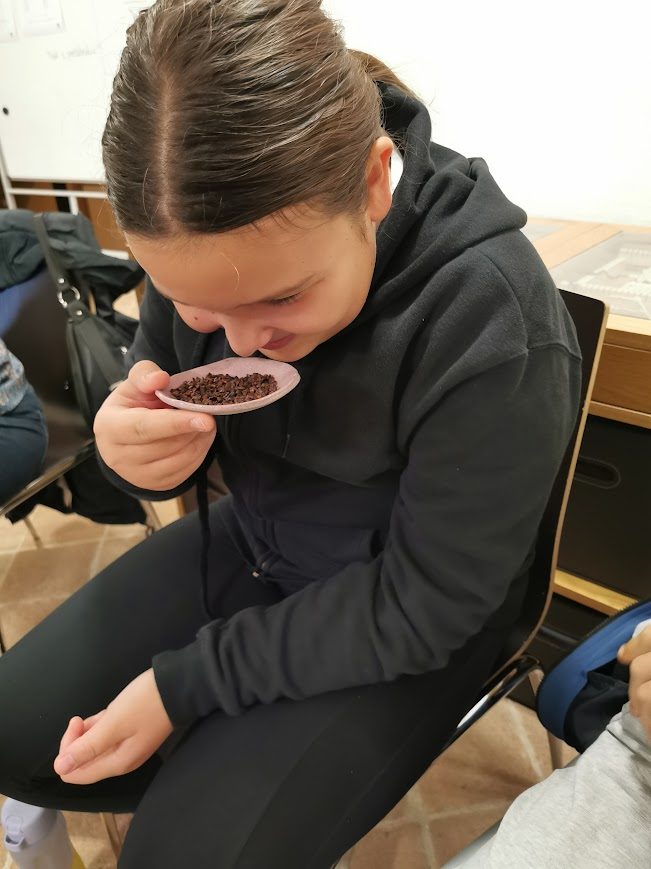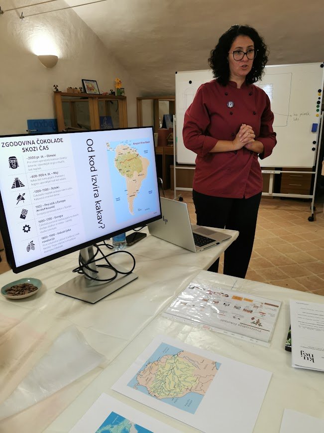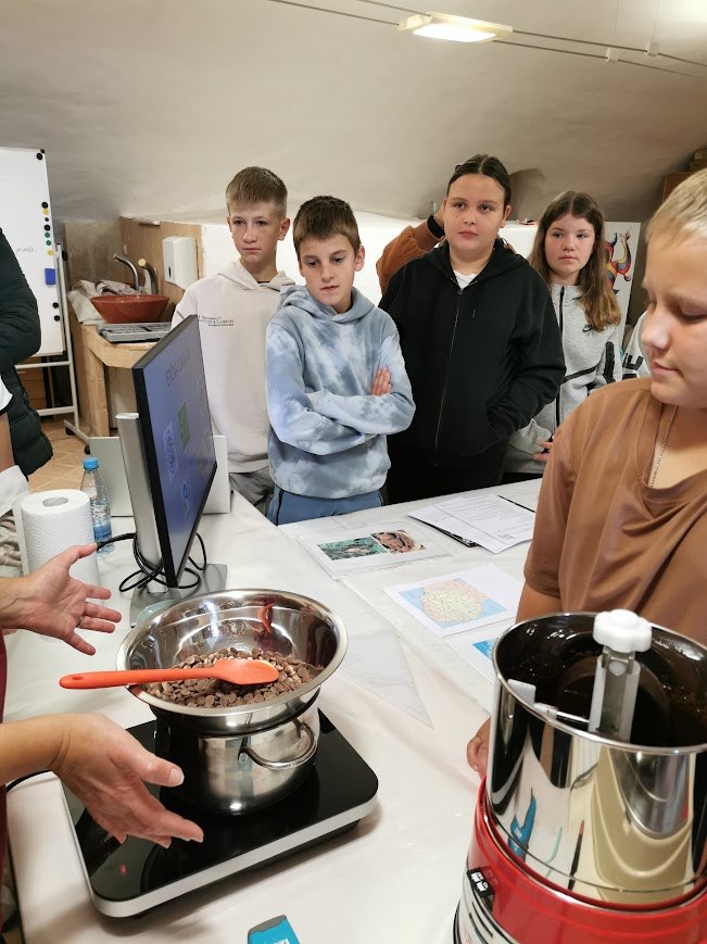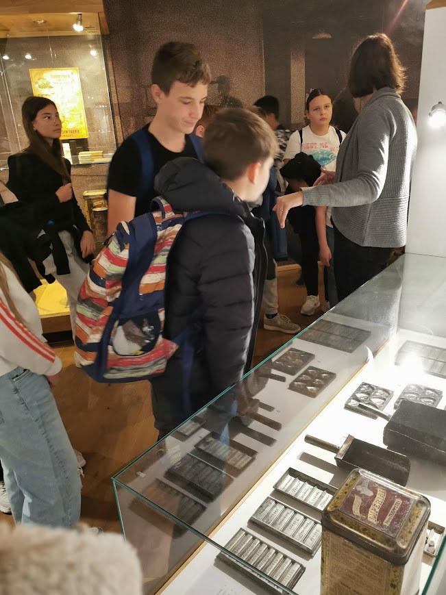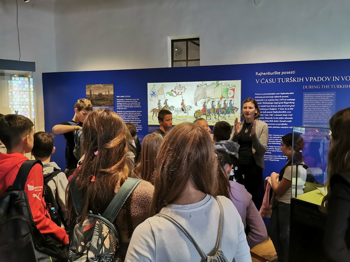 Zjutraj smo se zbrali v šoli in si vzeli malico. Nato smo počakali avtobus in se vkrcali. Pot do Krškega je bila kar dolga, a nam ni bilo dolgčas, ker smo opazovali čudovite pokrajine. Ustavili smo se na prvi postaji, ki je bil grad Rajhenburg v Brestanici pri Krškem. Razdelili smo se v dve skupini. Učenci 6. in 7. razreda smo najprej na delavnici čokolade izvedeli vse o izvoru čokolade, vrstah čokolade, si ogledali kako se čokolada izdela, nato pa smo si naredili svoje čokoladne lizike in si jih poljubno okrasili. Lizike so bile zelo okusne…