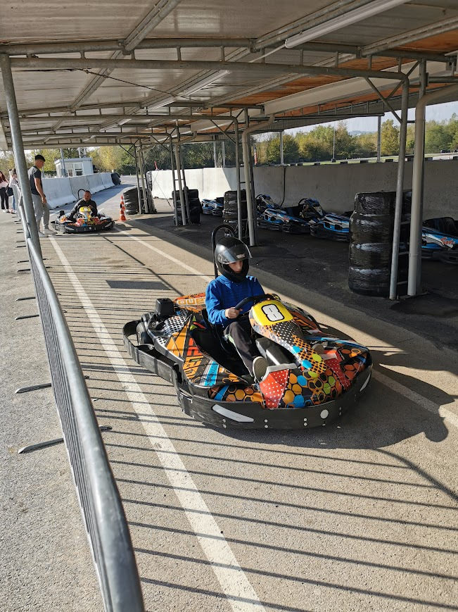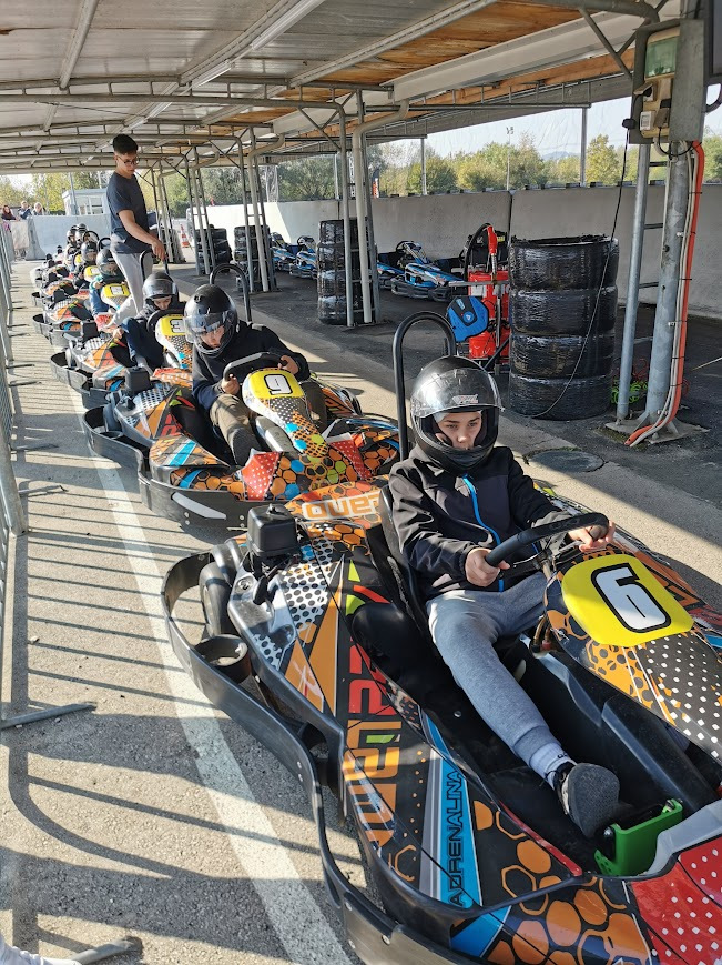 V Racelandu smo se razdelili v pet skupin in po takem vrstnem redu smo se tudi vozili z gokarti. Bilo je zelo hitro a tudi nadvse zabavno.