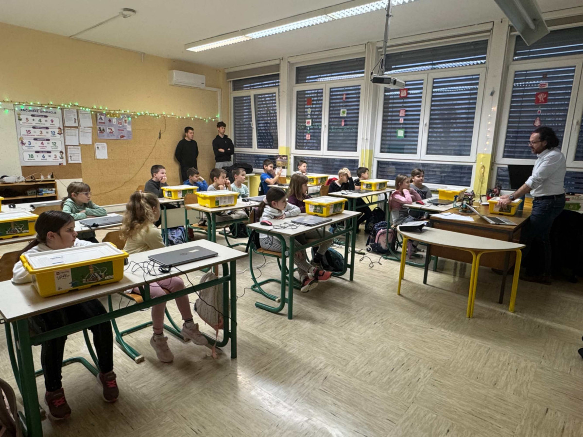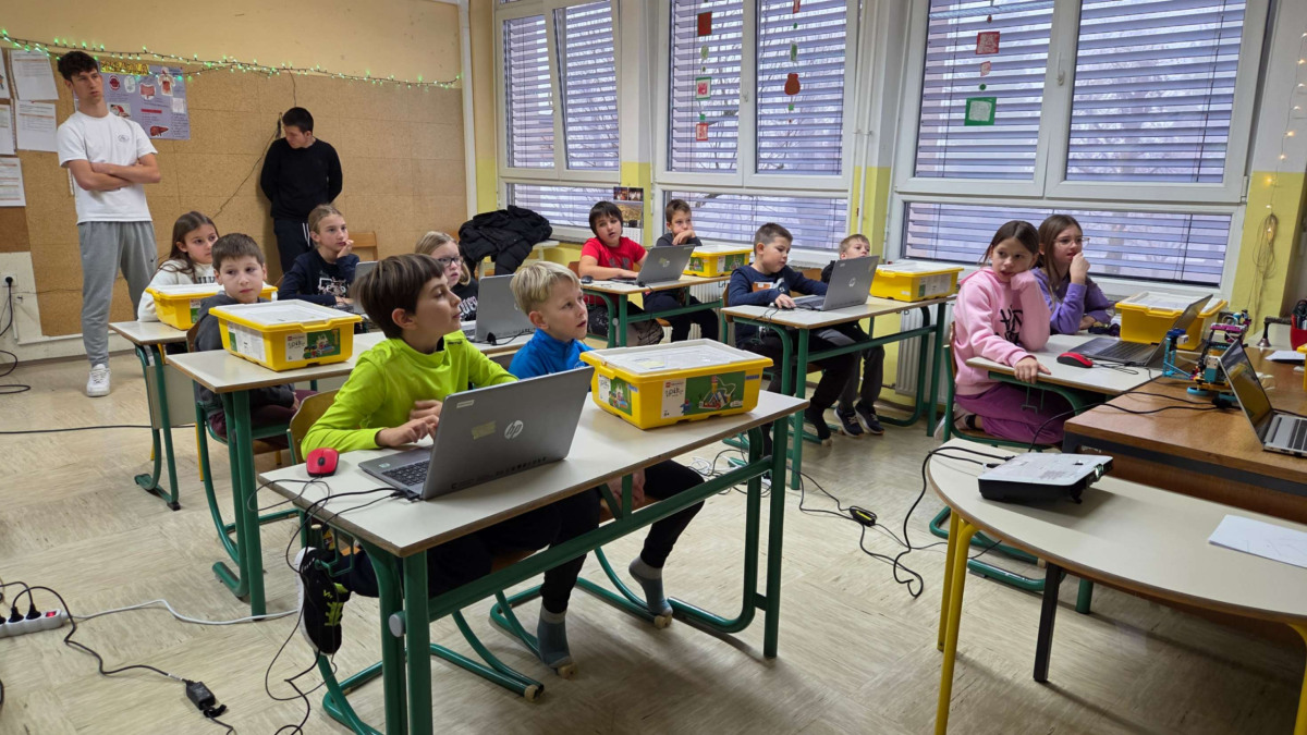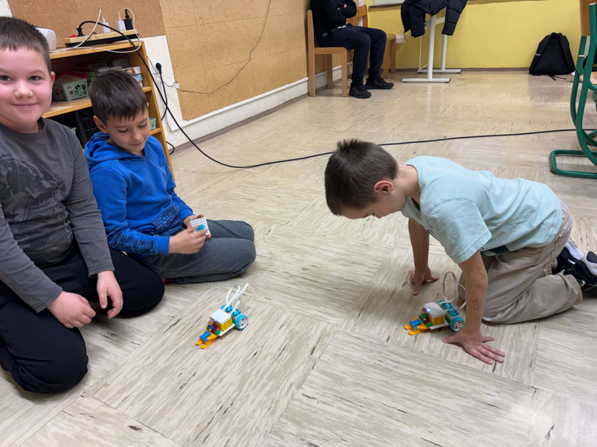Danes, 3. 12. 2025, smo učenci 4. razreda dve šolski uri namenili robotiki. Imel sem se zelo lepo. Izdelovali smo robotke. Najbolj mi je bilo všeč, ko smo z barvno kamero upravljali vrtenje elektromotorja. Videli smo tudi napravo, ki lahko sama zloži Rubikovo kocko. Nato smo tudi sami programirali robotke, ki so izgledali kot snežne sani. Sledilo je tekmovanje v njihovi hitrosti.