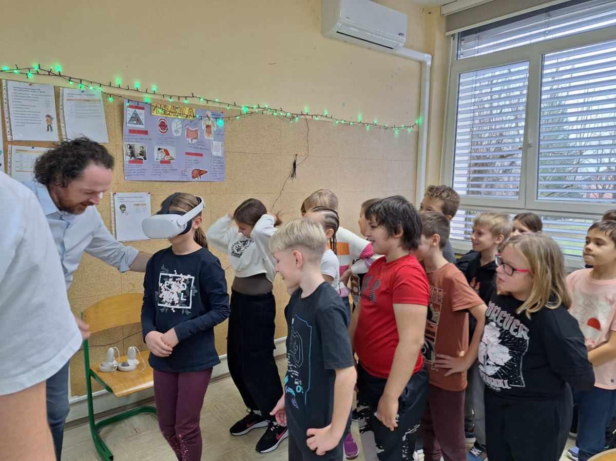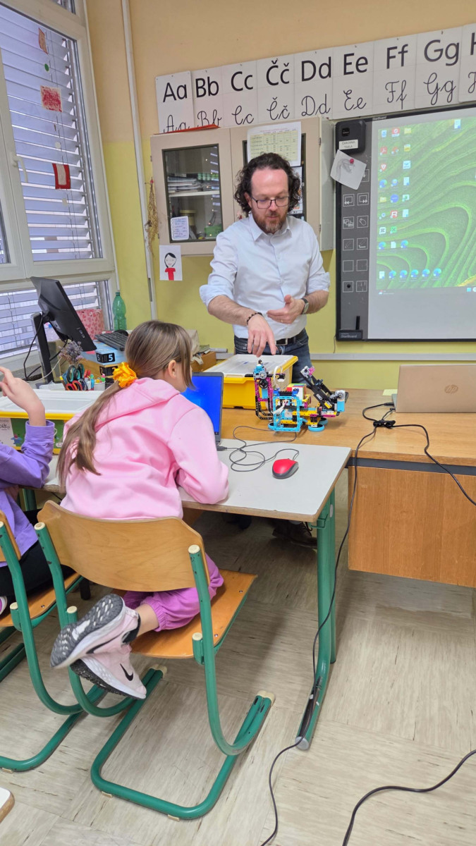 V sredo, 3. grudna 2025, smo imeli učenci četrtega razreda del pouka robotiko. Uvodoma smo se naučili štiri osnovne stvari: kako se pripravi senzor barv, kako se prižge motor in luč na robotu ter nekaj osnov programiranja. Nato smo morali zgraditi svoje snežne sani in jih na računalniku programirati. Sledile so dirke s snežnimi sanmi, ki so bile napete in hkrati prav zabavne. Za zaključek smo bili z VR (virtualna resničnost) očali v vesolju in pod nami je bila Zemlja. Vse se je zdelo zelo resnično.