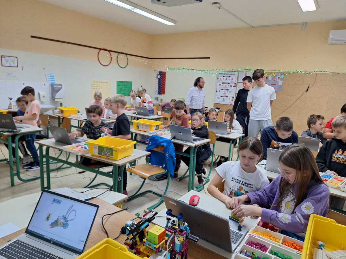 V sredo, 3. 12. 2025, smo učenci 3., 4. in 5. razreda del pouka namenili robotiki. Prvi dve uri smo imeli pouk po urniku. Nato smo pojedli malico in odšli v 5. razred. Tam so nas čakali učitelji, ki so se nam predstavili. Sledila je predstavitev glavnih kock za robotiko. Med njimi je bila tudi pametna glava. Nato smo naredili štiri preizkuse, z namenom, da bi se naučili, kako izdelati robota. Sledilo je dejansko sestavljanje robota ter njegovo programiranje, zatem pa tekmovanje. Po moji oceni smo vsi zmagovalci, saj smo uspeli sestaviti robota.