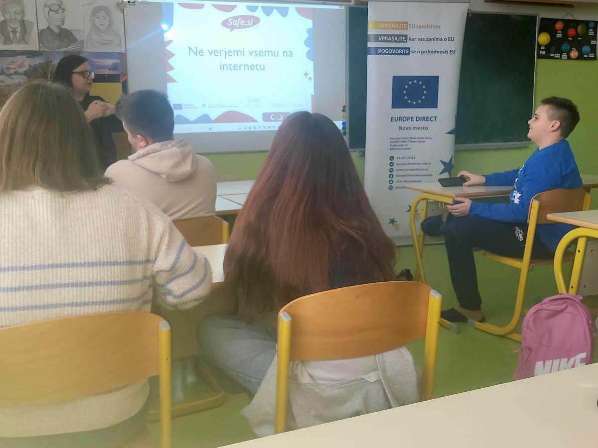 V ponedeljek, 26. 1. 2026, smo na šolo povabili gostji Nušo Hudoklin iz informacijske točke Europe direct Novo mesto in Gabrielo Gabrovec iz Safe.si.
