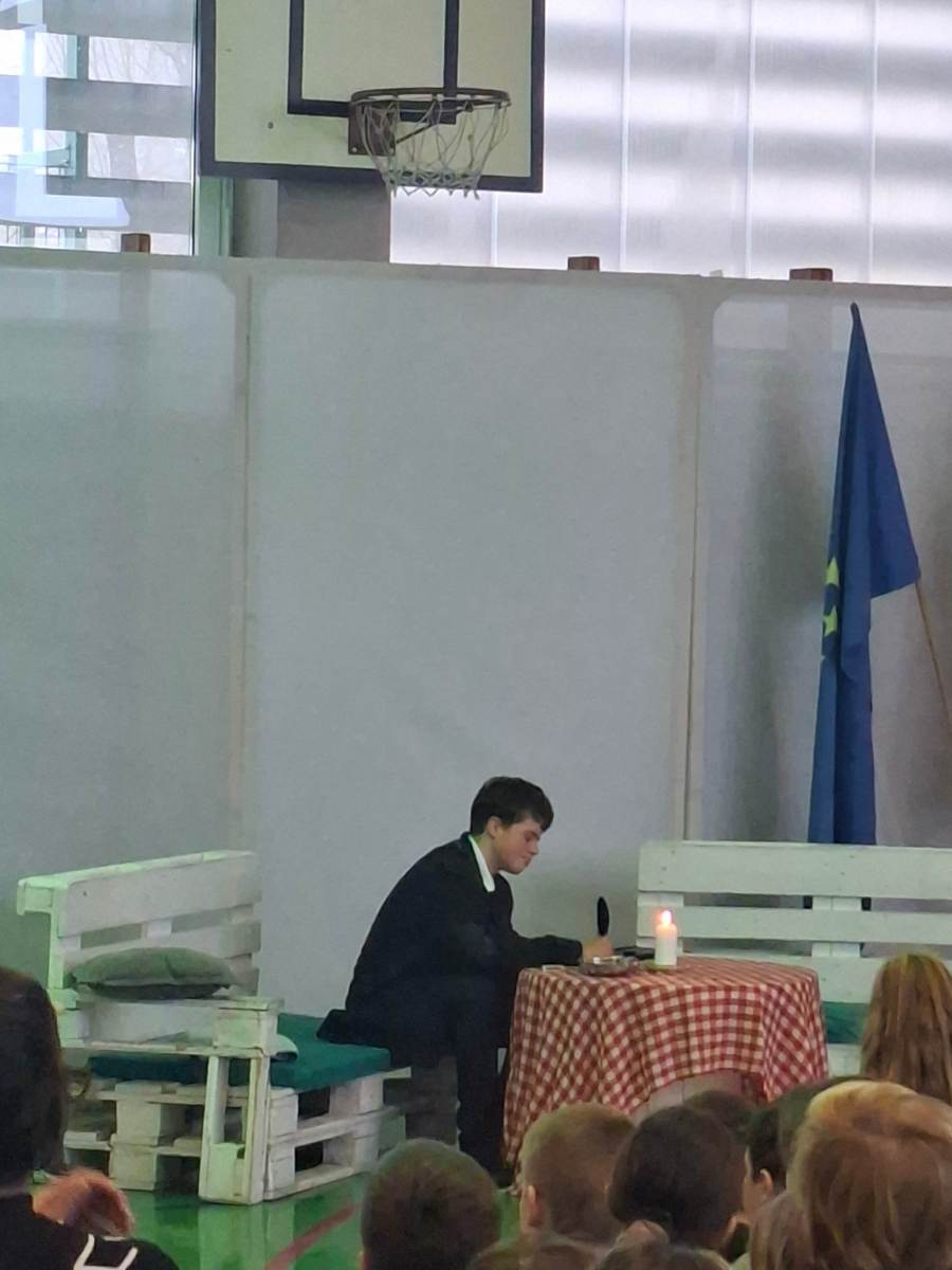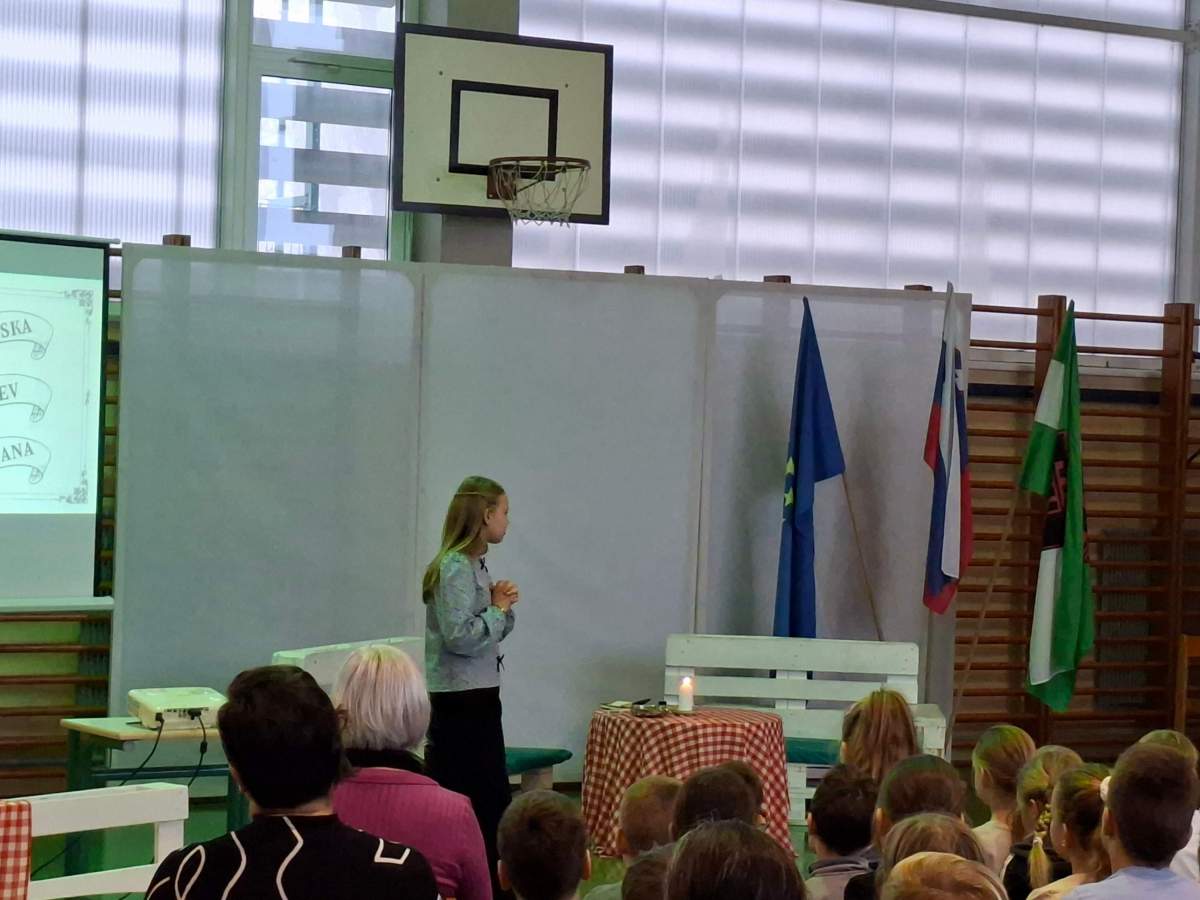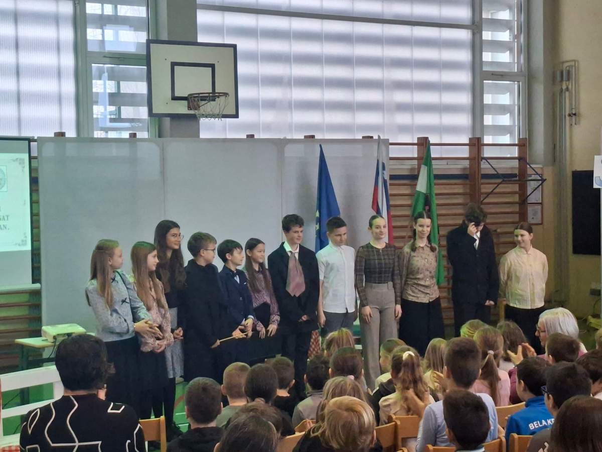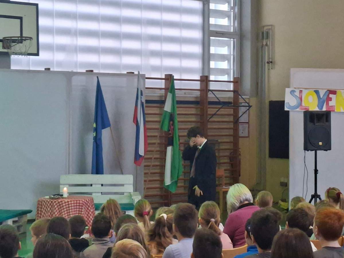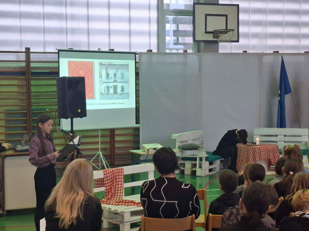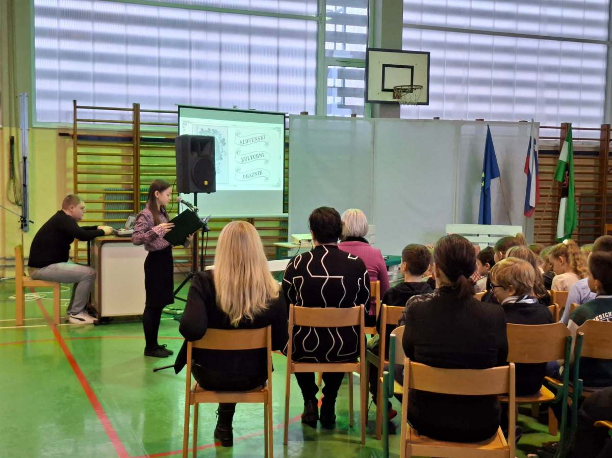 V petek, 6. februarja, je k nam prišel dr. France Prešeren. Za idejno zasnovo in organizacijo prireditve je poskrbela učiteljica Nataša Podhostnik, za sceno in kostume učitelj Žan Brozovič in učenci, za ozvočenje pa računalnikar Rok Mikšič.