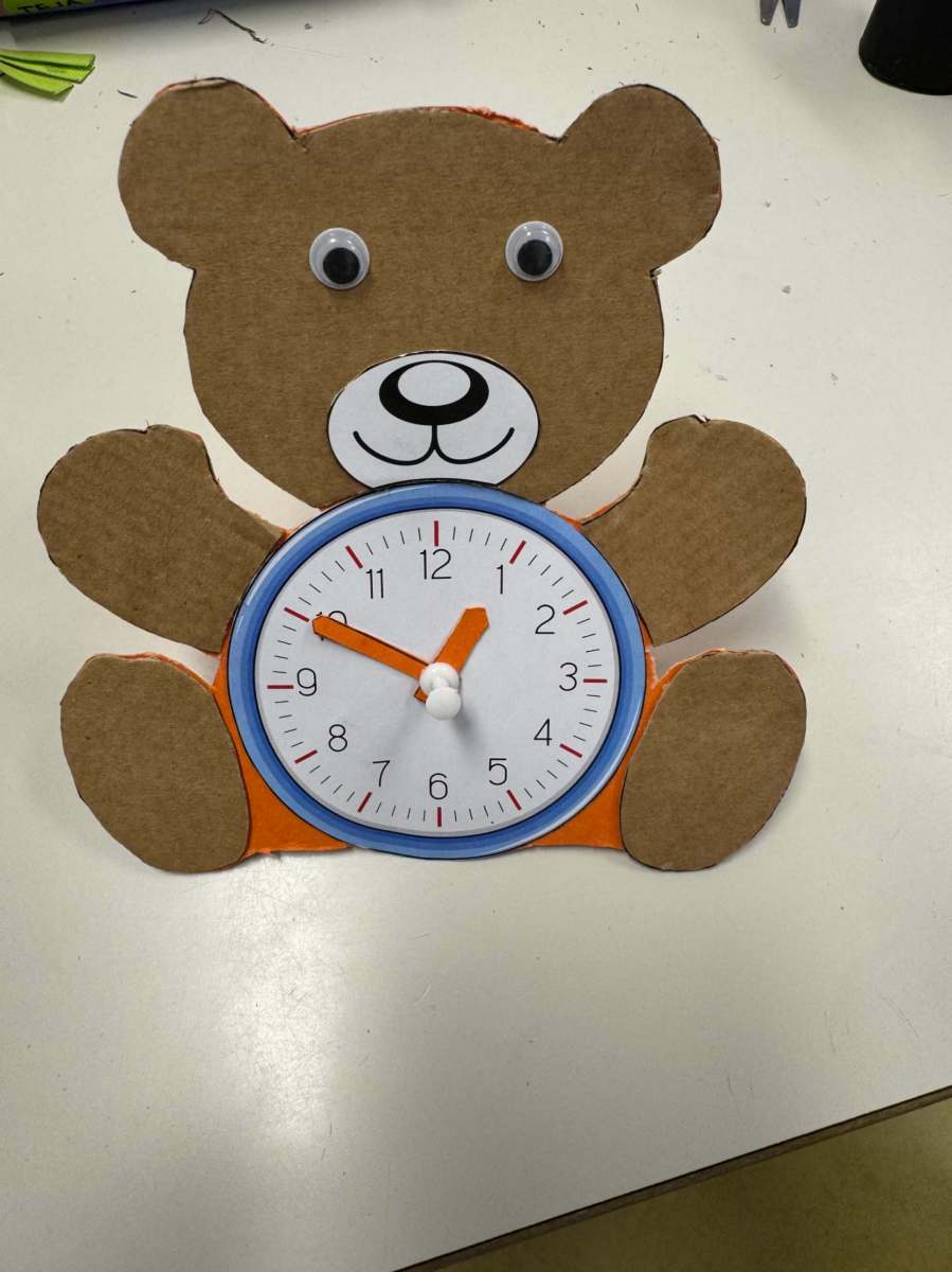 Izdelovali smo medvedka iz papirja. Na njegov trebuh smo pričvrstili uro. Izdelek je bil ocenjen. Bilo je zelo lepo.