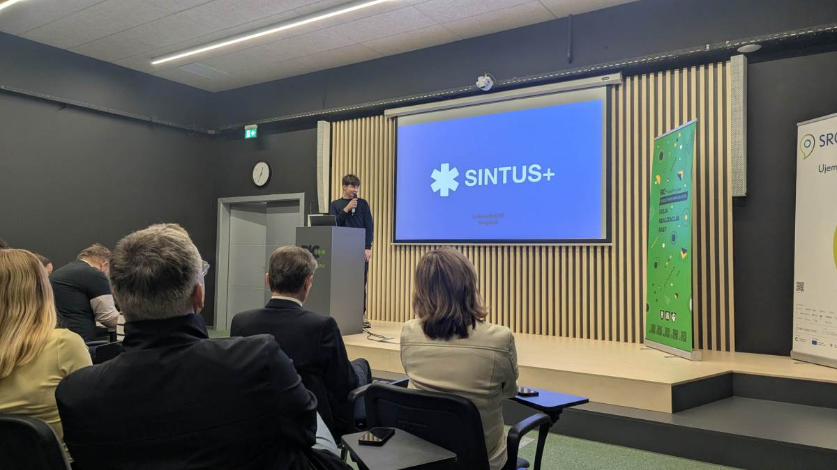 Luka je predstavil projekt Sintus+, celovit sistem za večjo varnost starejših. Gre za pametno zapestnico in aplikacijo, ki spremlja vitalne funkcije (srčni utrip, kisik v krvi, telesno temperaturo in krvni tlak) ter zaznava padce ali nenavadne vzorce gibanja. Luka je rešitev zasnoval z mislijo na domove za starejše in bolnišnice, kjer bi sistem osebje takoj opozoril na nevarnost, GPS-lokacija pa bi omogočila hitro posredovanje.