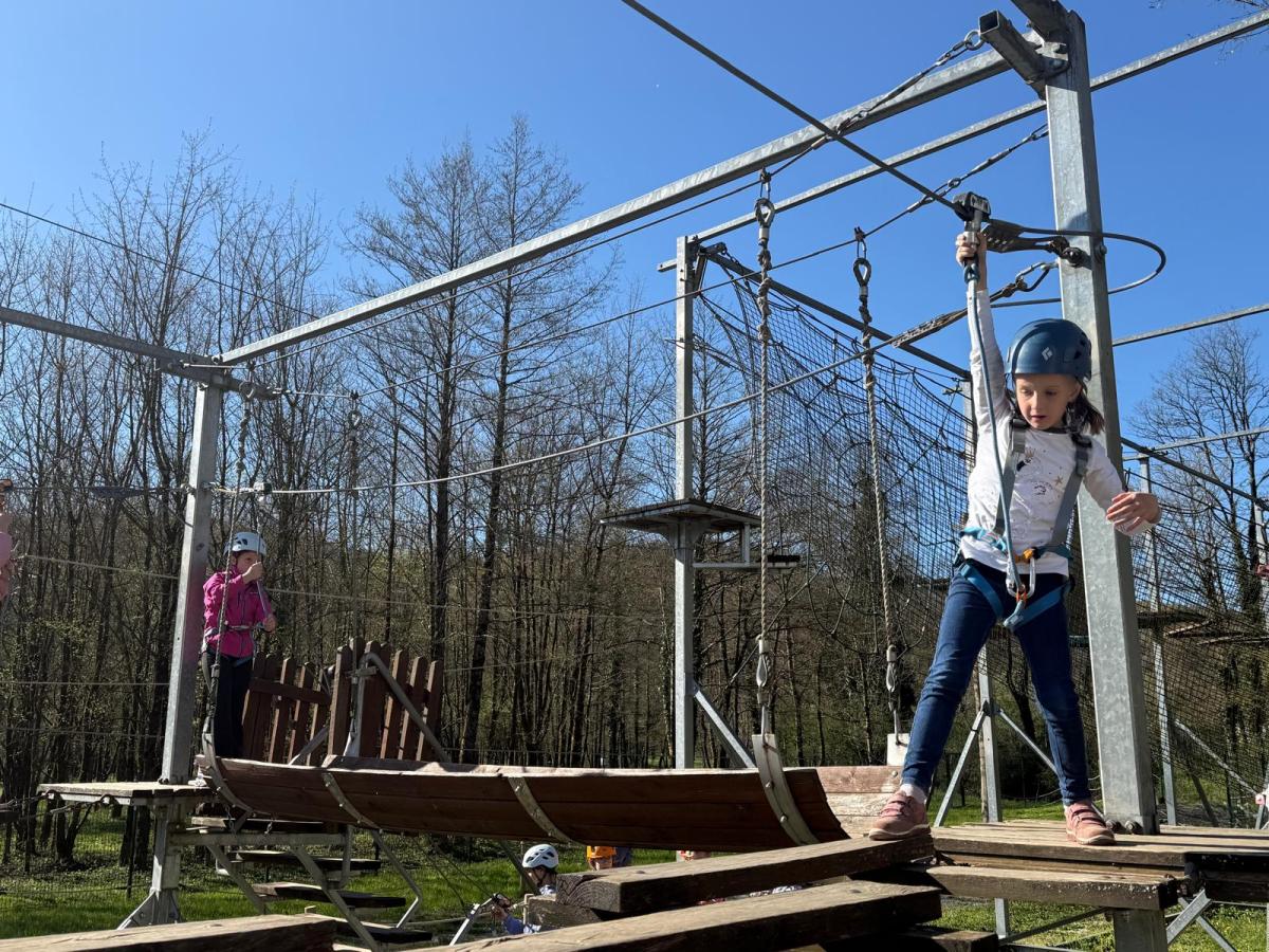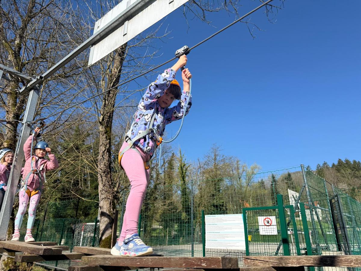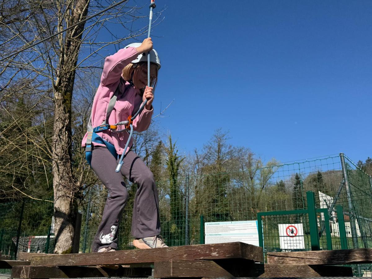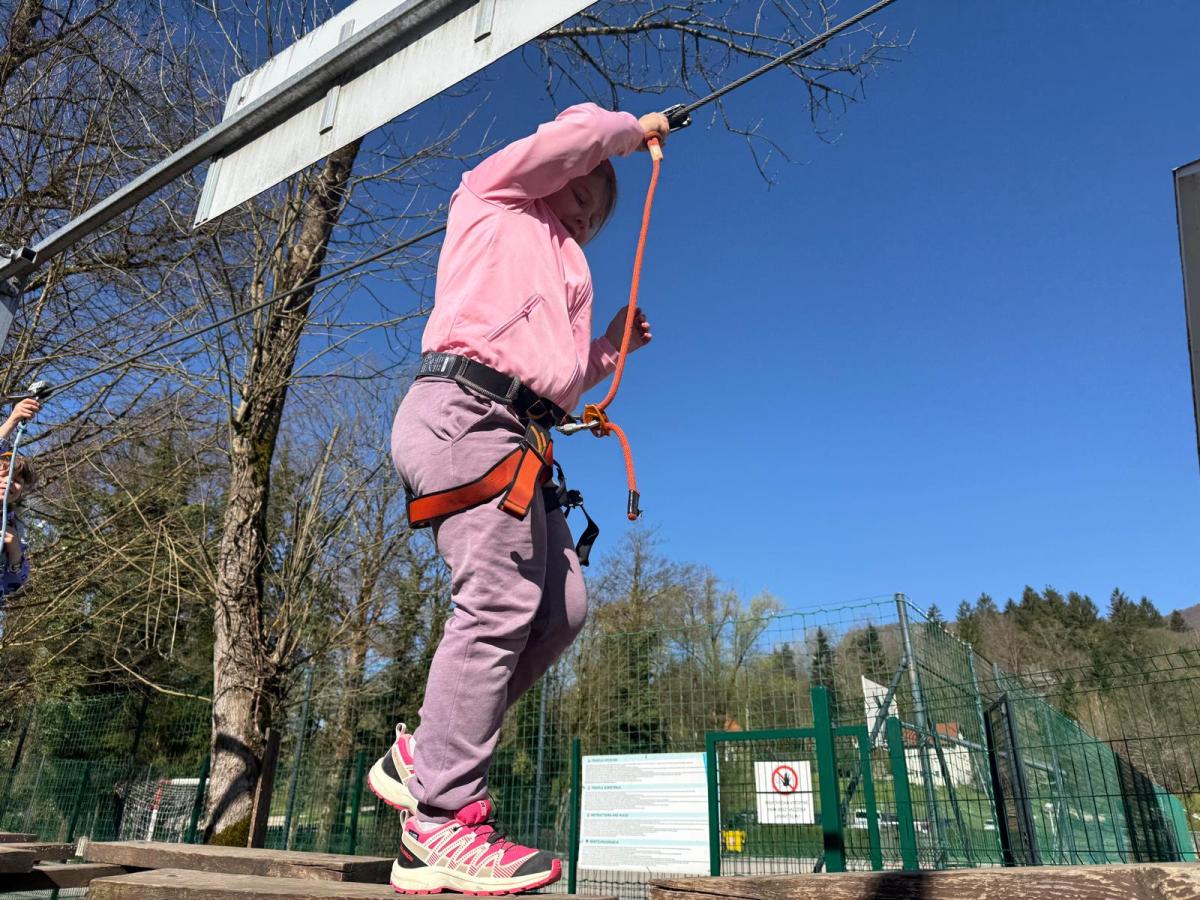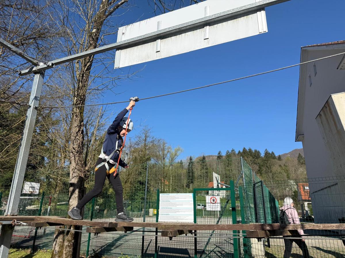 Dan so učenci začeli z jutranjo telovadbo, ki jih je prijetno razgibala in pripravila na nove izzive. Po zajtrku so se razdelili v dve skupini. Prva skupina si je ogledala Kostelsko hišo in cerkev ter spoznala kulturno dediščino kraja, druga skupina pa je svoje spretnosti in pogum preizkusila v adrenalinskem parku, kjer so premagovali različne ovire.