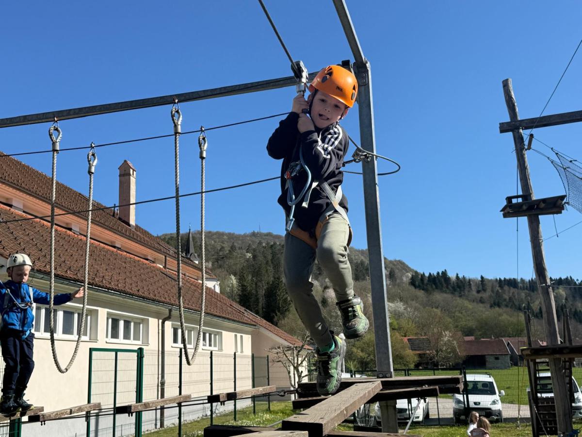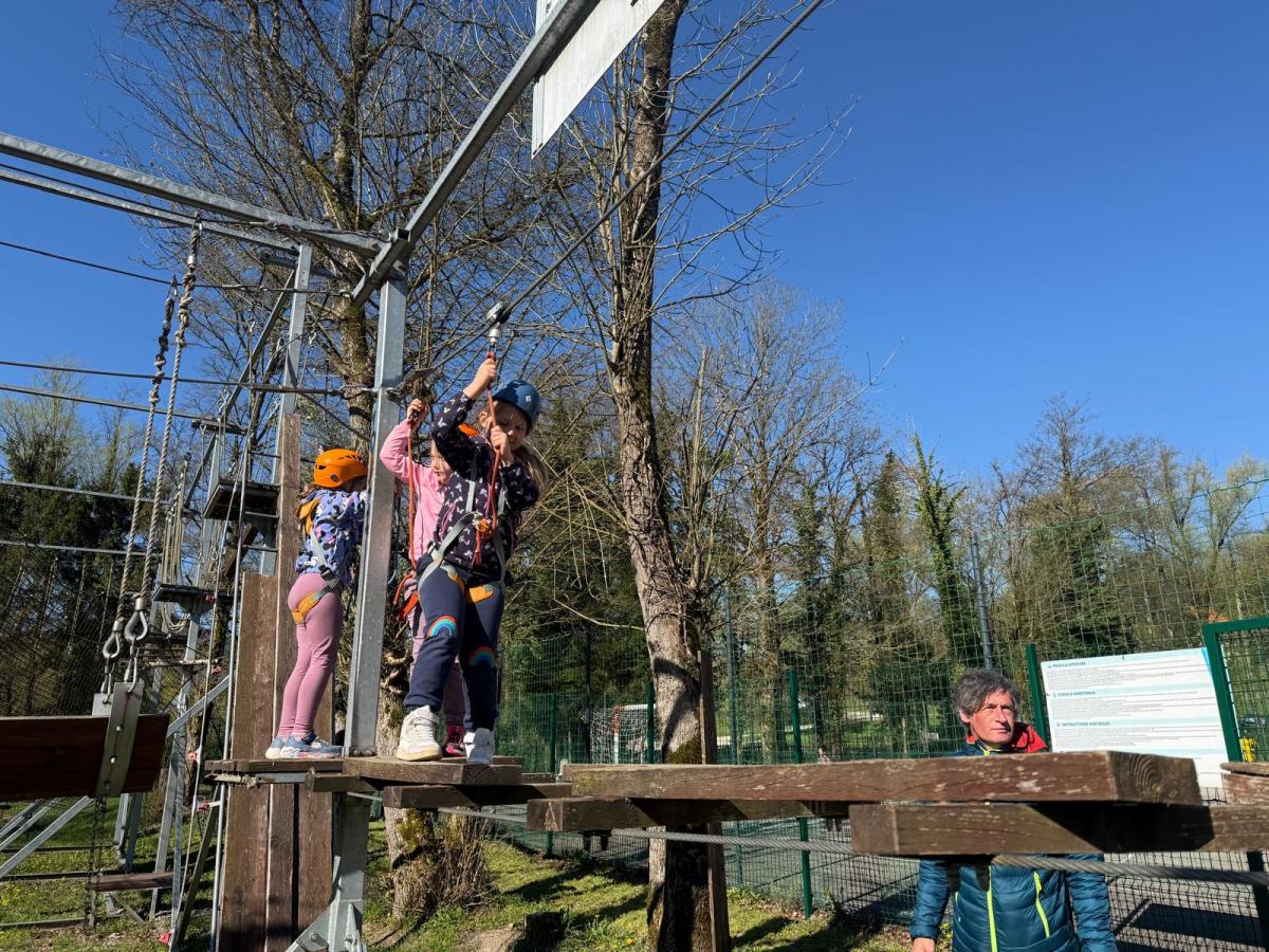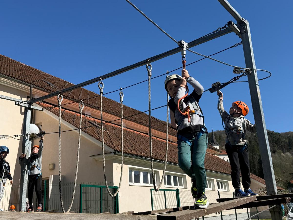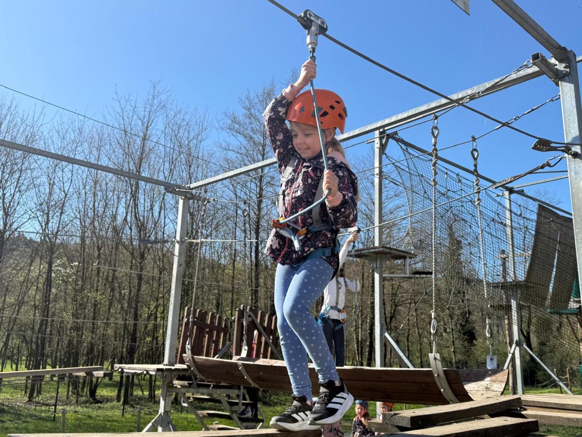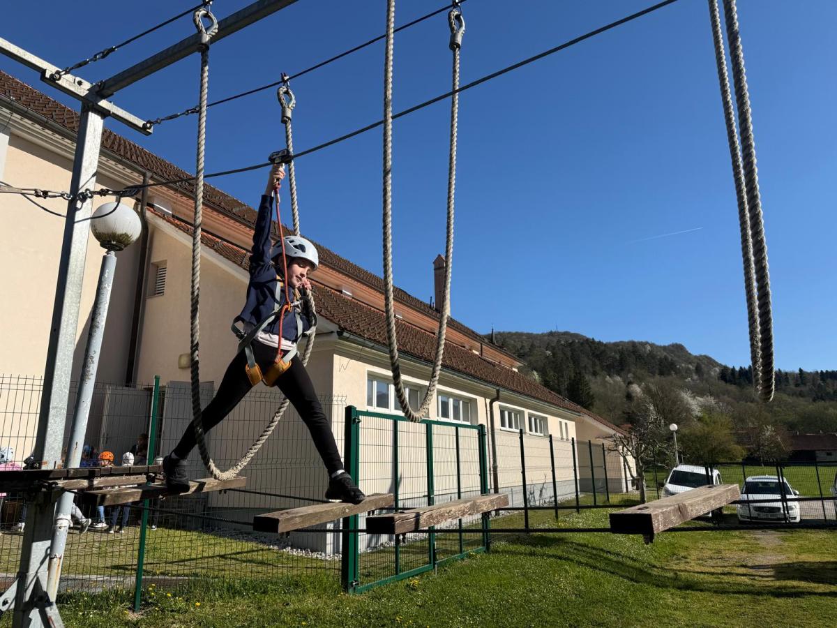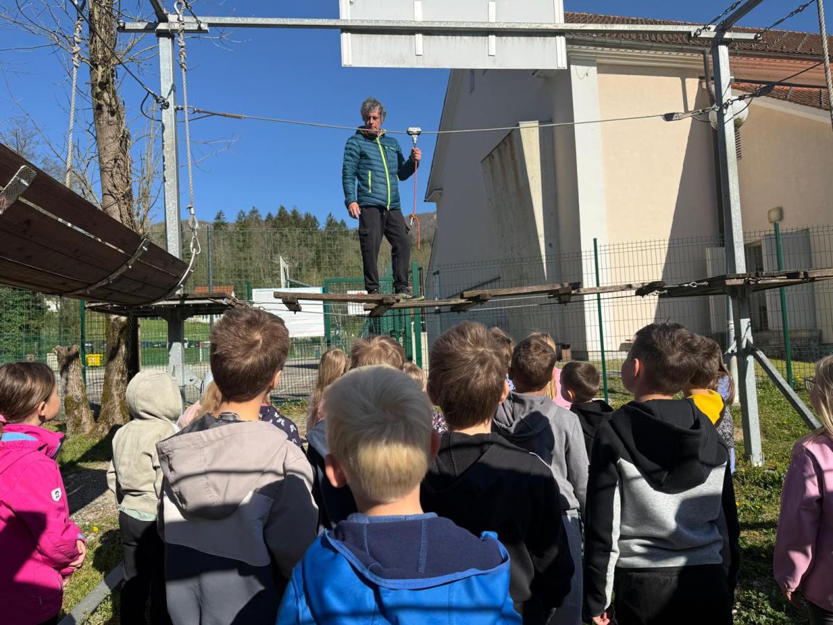 Dan so učenci začeli z jutranjo telovadbo, ki jih je prijetno razgibala in pripravila na nove izzive. Po zajtrku so se razdelili v dve skupini. Prva skupina si je ogledala Kostelsko hišo in cerkev ter spoznala kulturno dediščino kraja, druga skupina pa je svoje spretnosti in pogum preizkusila v adrenalinskem parku, kjer so premagovali različne ovire.