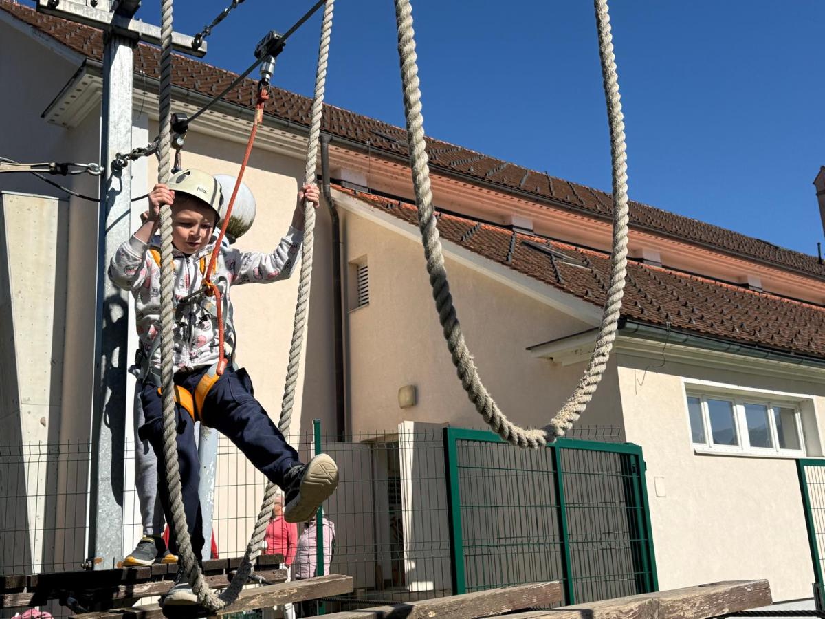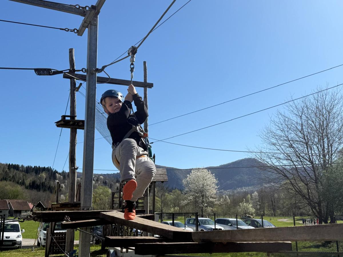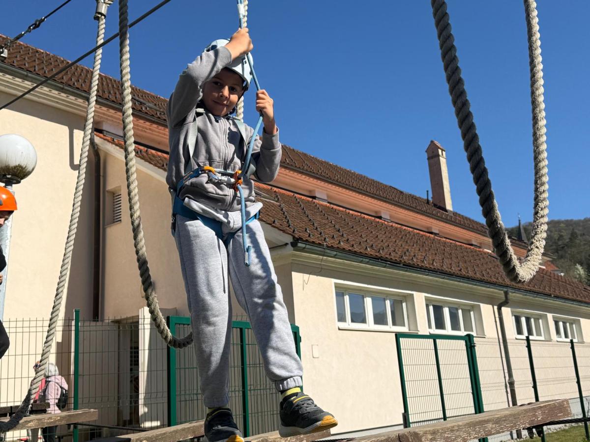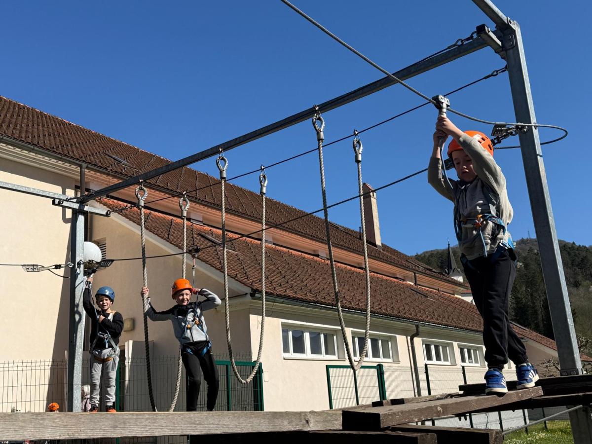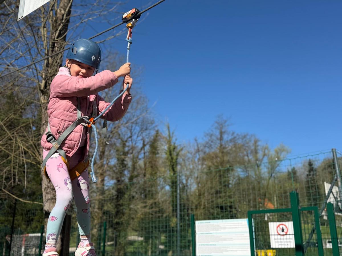 Dan so učenci začeli z jutranjo telovadbo, ki jih je prijetno razgibala in pripravila na nove izzive. Po zajtrku so se razdelili v dve skupini. Prva skupina si je ogledala Kostelsko hišo in cerkev ter spoznala kulturno dediščino kraja, druga skupina pa je svoje spretnosti in pogum preizkusila v adrenalinskem parku, kjer so premagovali različne ovire.