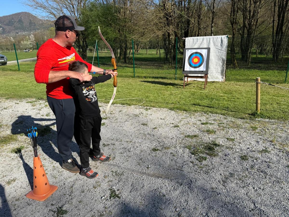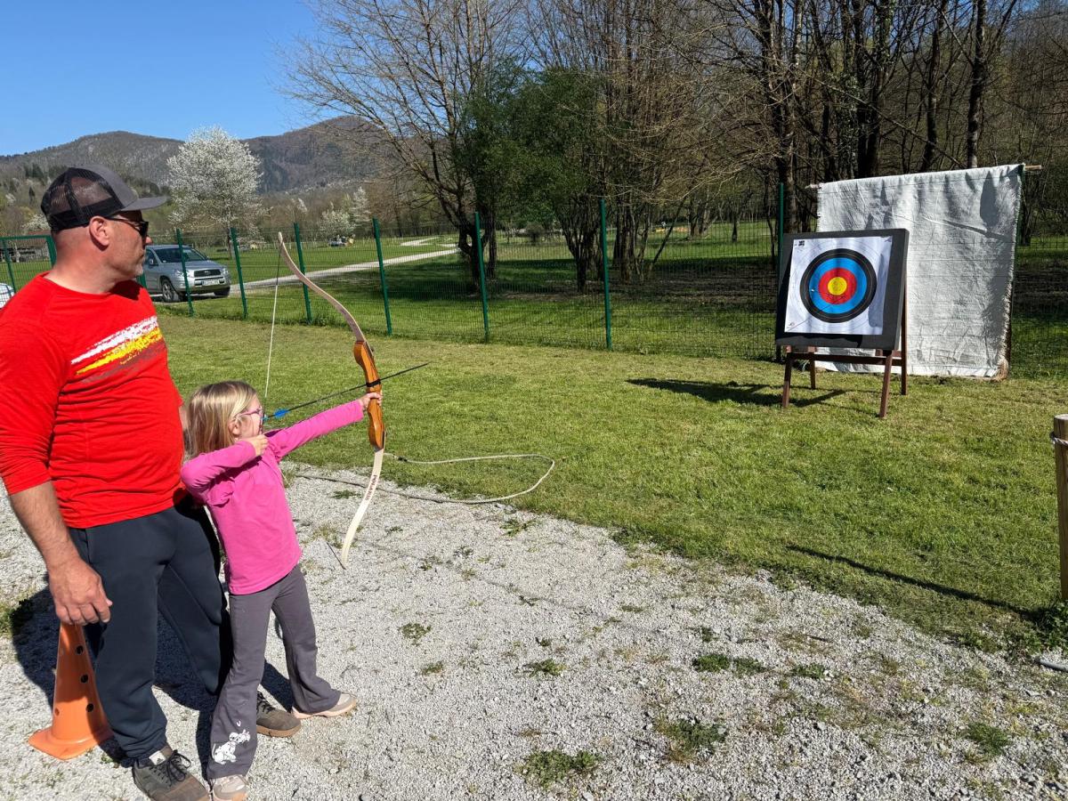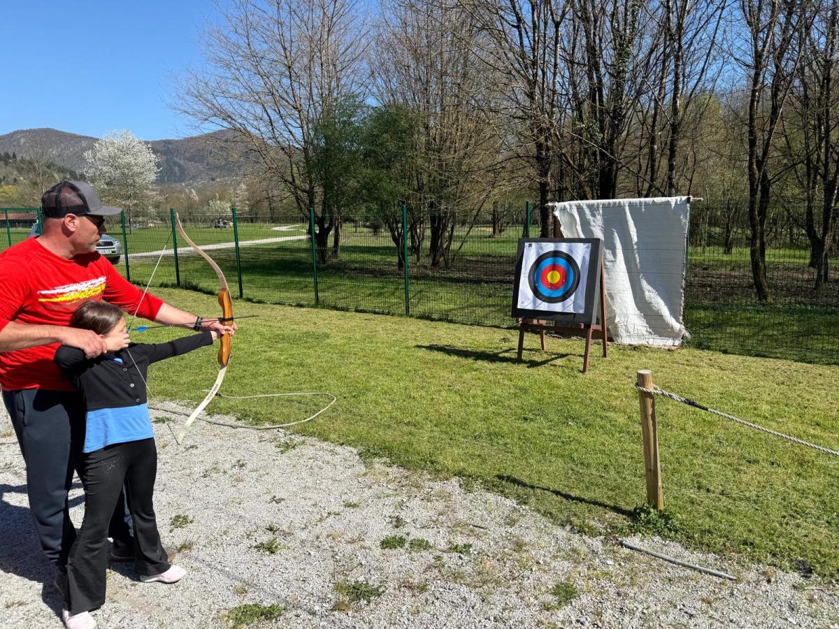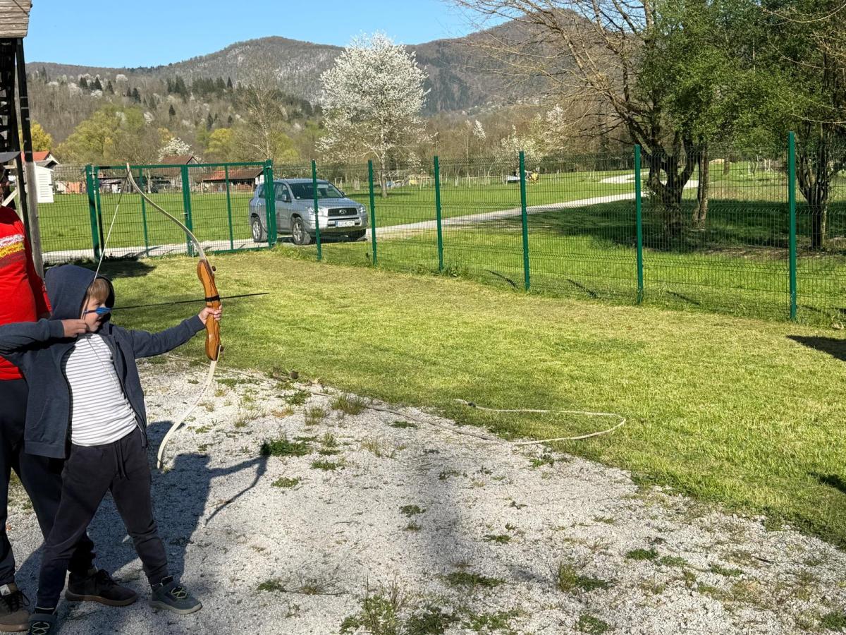 Po dopoldanskih dejavnostih je sledilo kosilo in krajši počitek. V popoldanskem času so učenci ponovno delovali v dveh skupinah – ena skupina se je preizkusila v streljanju z lokom, druga pa je ustvarjala in izdelovala vetrnice.