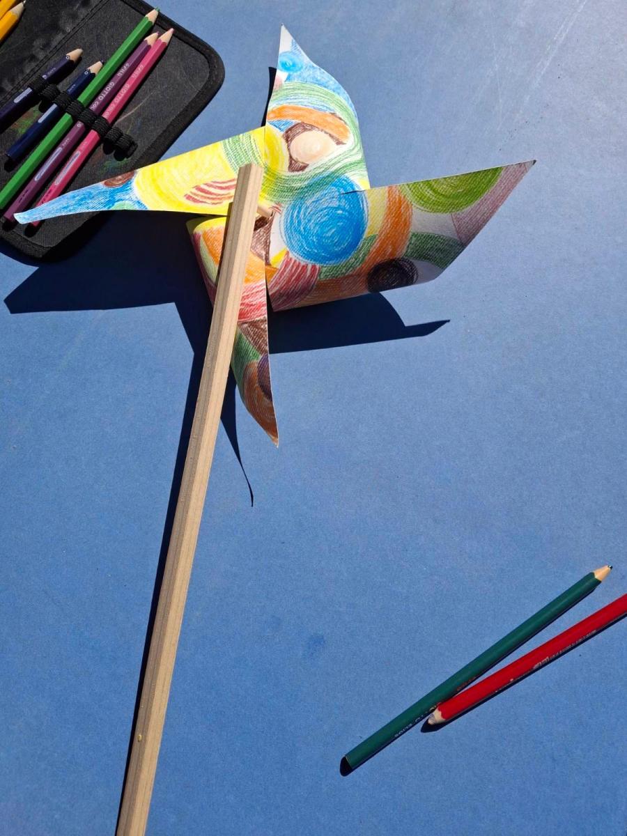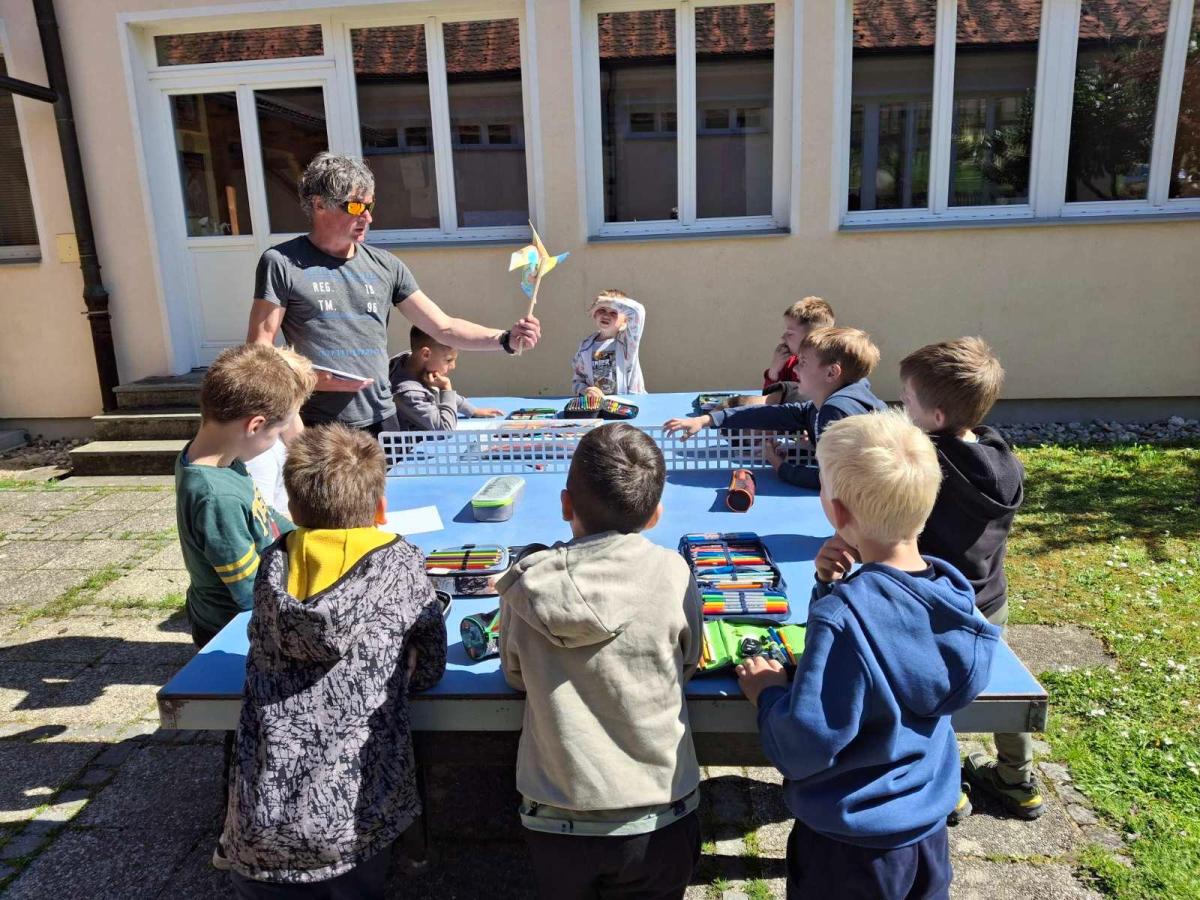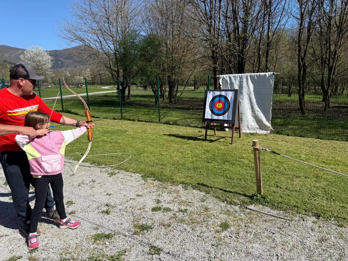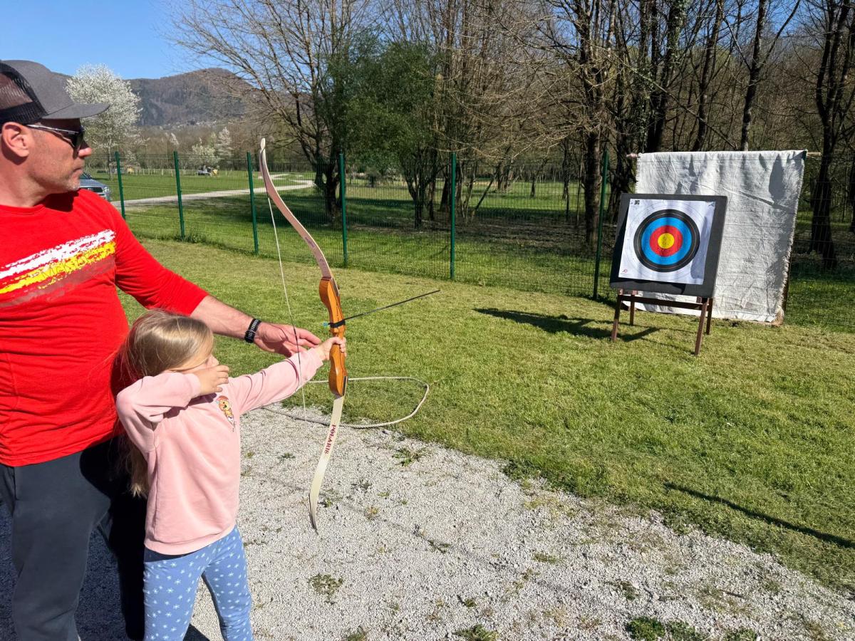 Po dopoldanskih dejavnostih je sledilo kosilo in krajši počitek. V popoldanskem času so učenci ponovno delovali v dveh skupinah – ena skupina se je preizkusila v streljanju z lokom, druga pa je ustvarjala in izdelovala vetrnice.