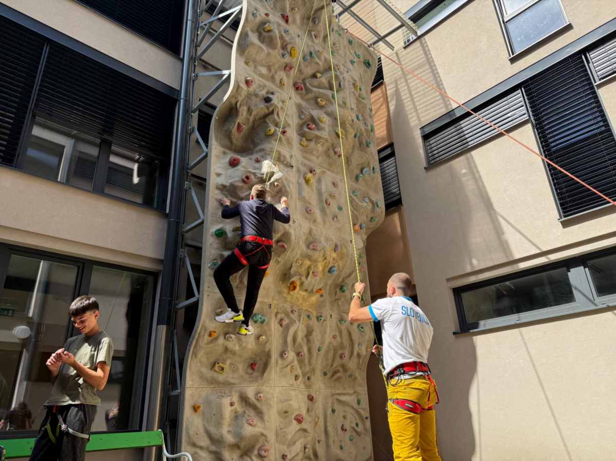 V četrtek, 16.4.2026, smo se učenci 8. in 9. razreda v šoli v naravi v Tolminu odpravili plezat na plezalno steno. Vsi smo se razveselili plezanja in v njem uživali. Po tej dejavnosti smo imeli malo odmora in se odpravili kolesarit. Narava po kateri smo kolesarili je bila zelo lepa. Zaradi hribov, jam, kamnite ceste in ostalih preprek smo bili zelo izmučeni. Vsi utrujeni smo pojedli kosilo, malo počivali in se odpravili teč 600 metrov.